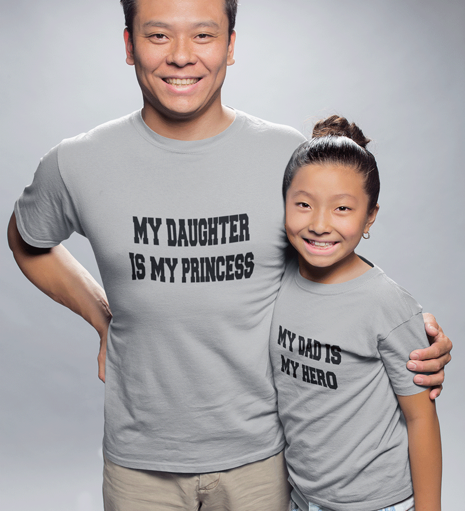 My Dad Is My hero & My Daughter Is My princess Father and Daughter Matching T-Shirt- FashionRazor