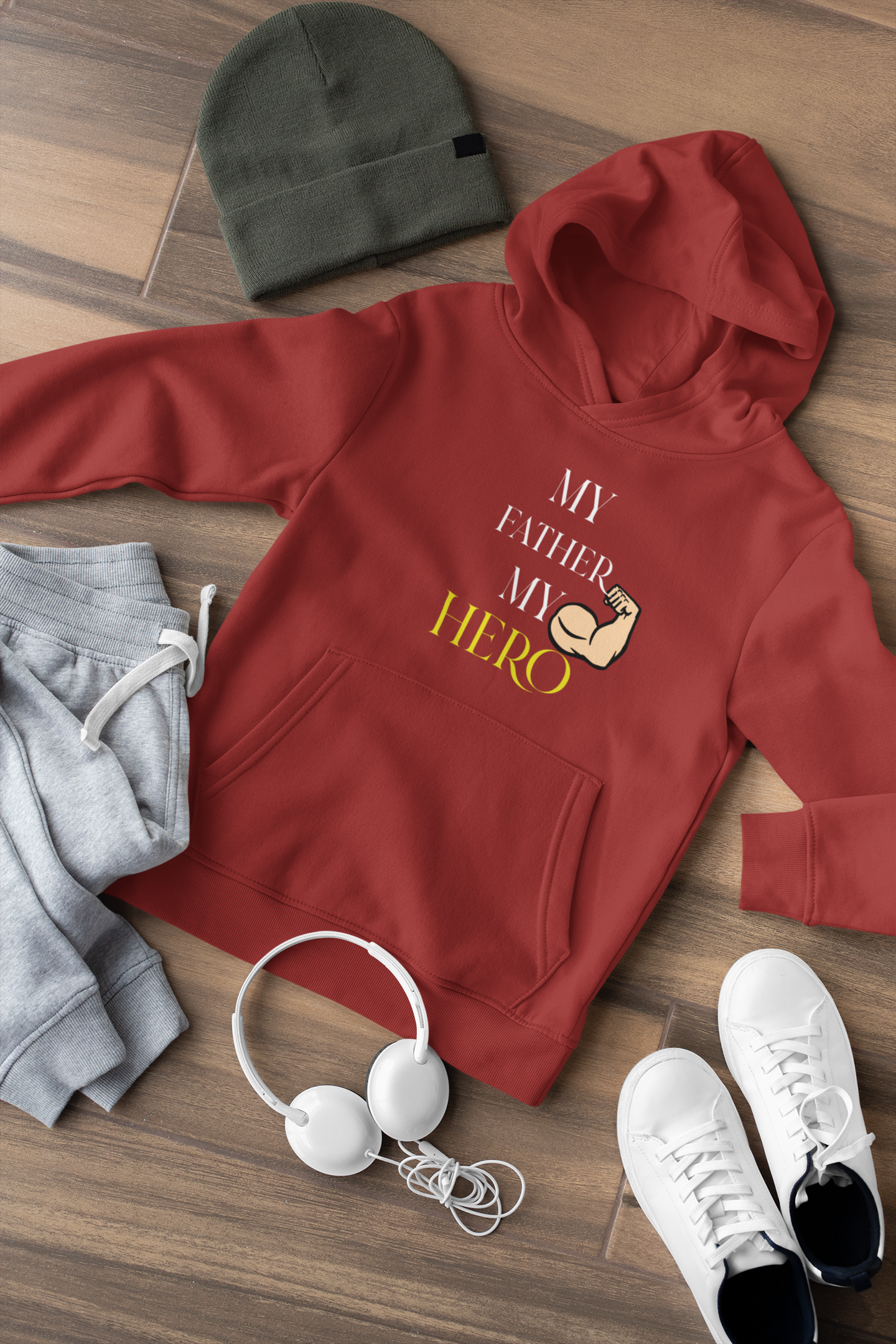 My Father My Hero Father and Daughter Red Matching Hoodies- FashionRazor
