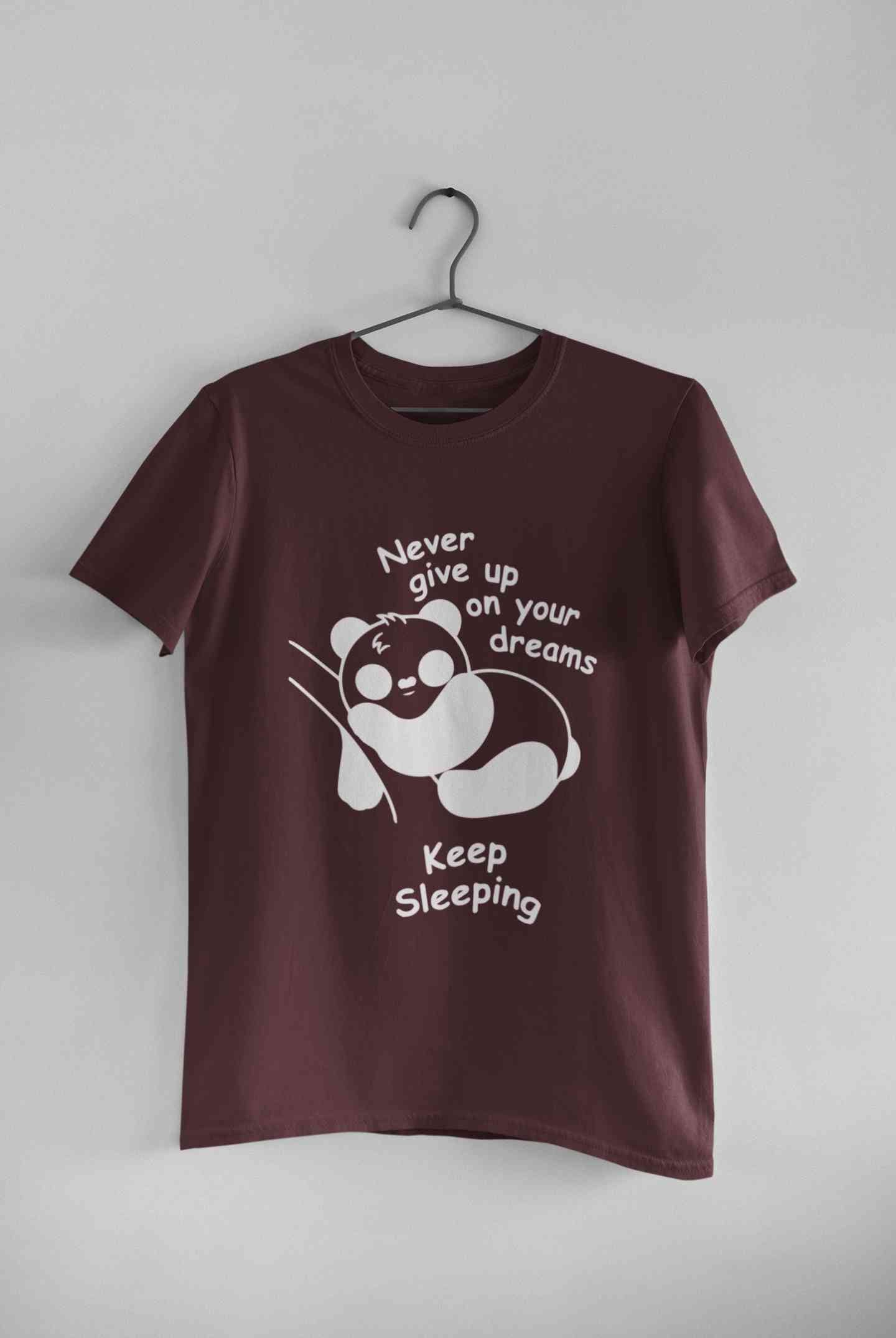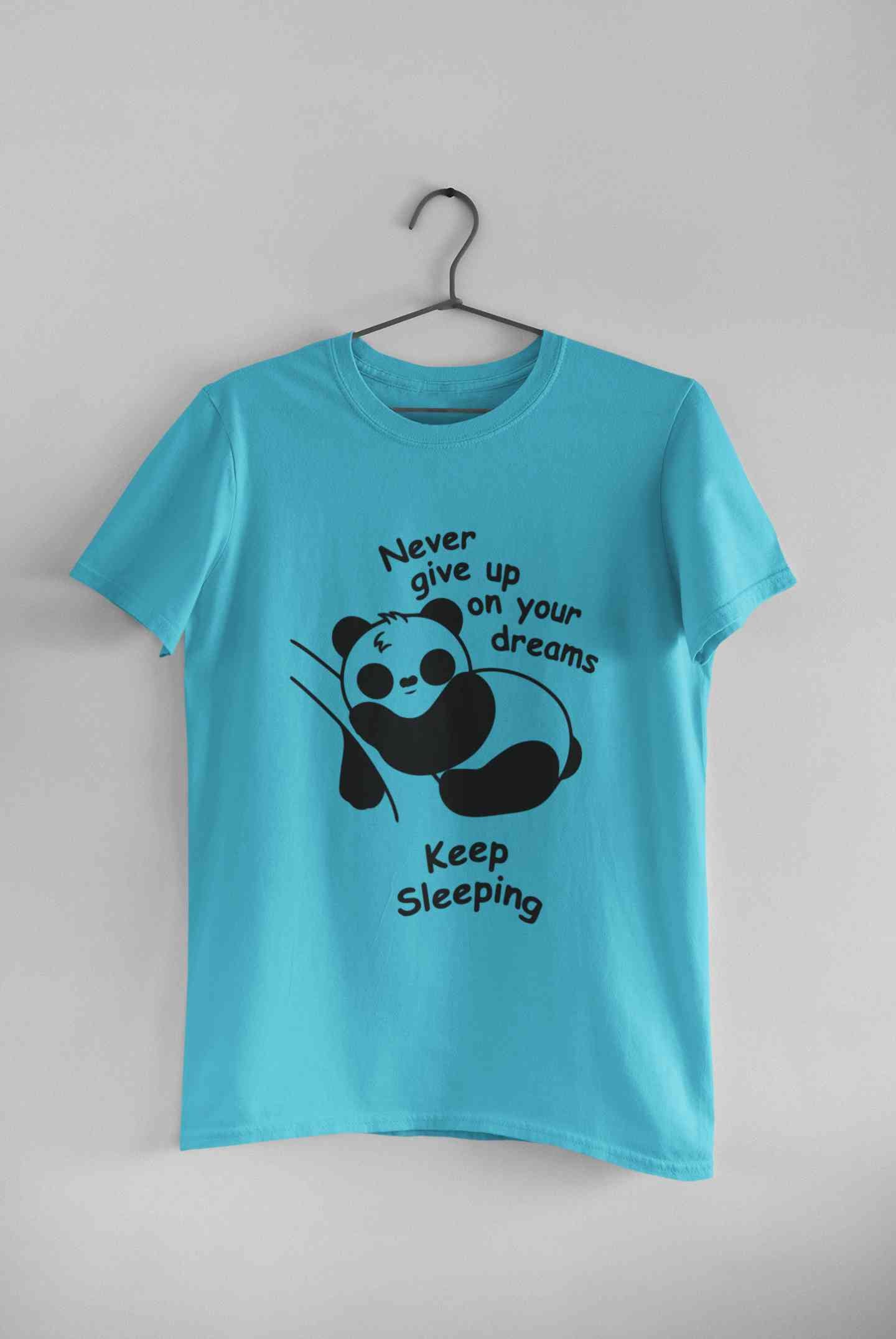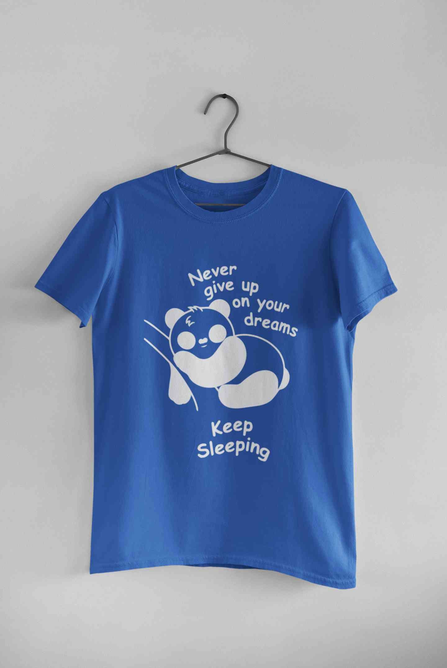 Never Give Up On Your Dream Keep Sleeping Funny Graphic Quotes Mens Half Sleeves T-shirt- FashionRazor