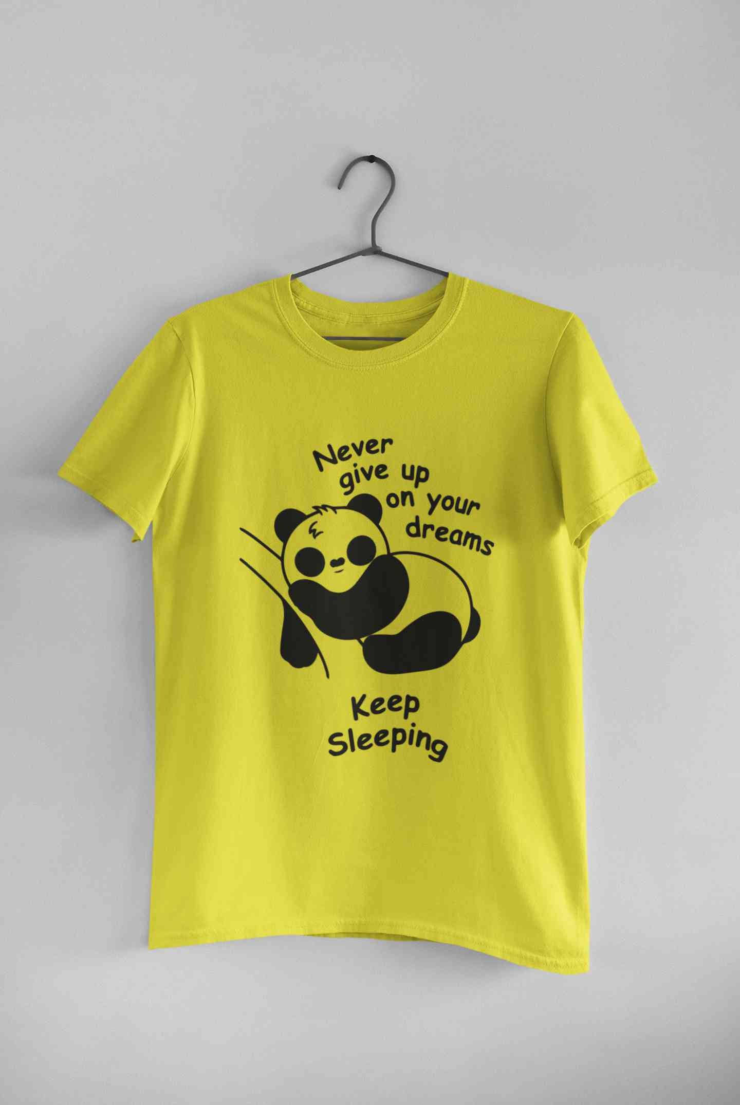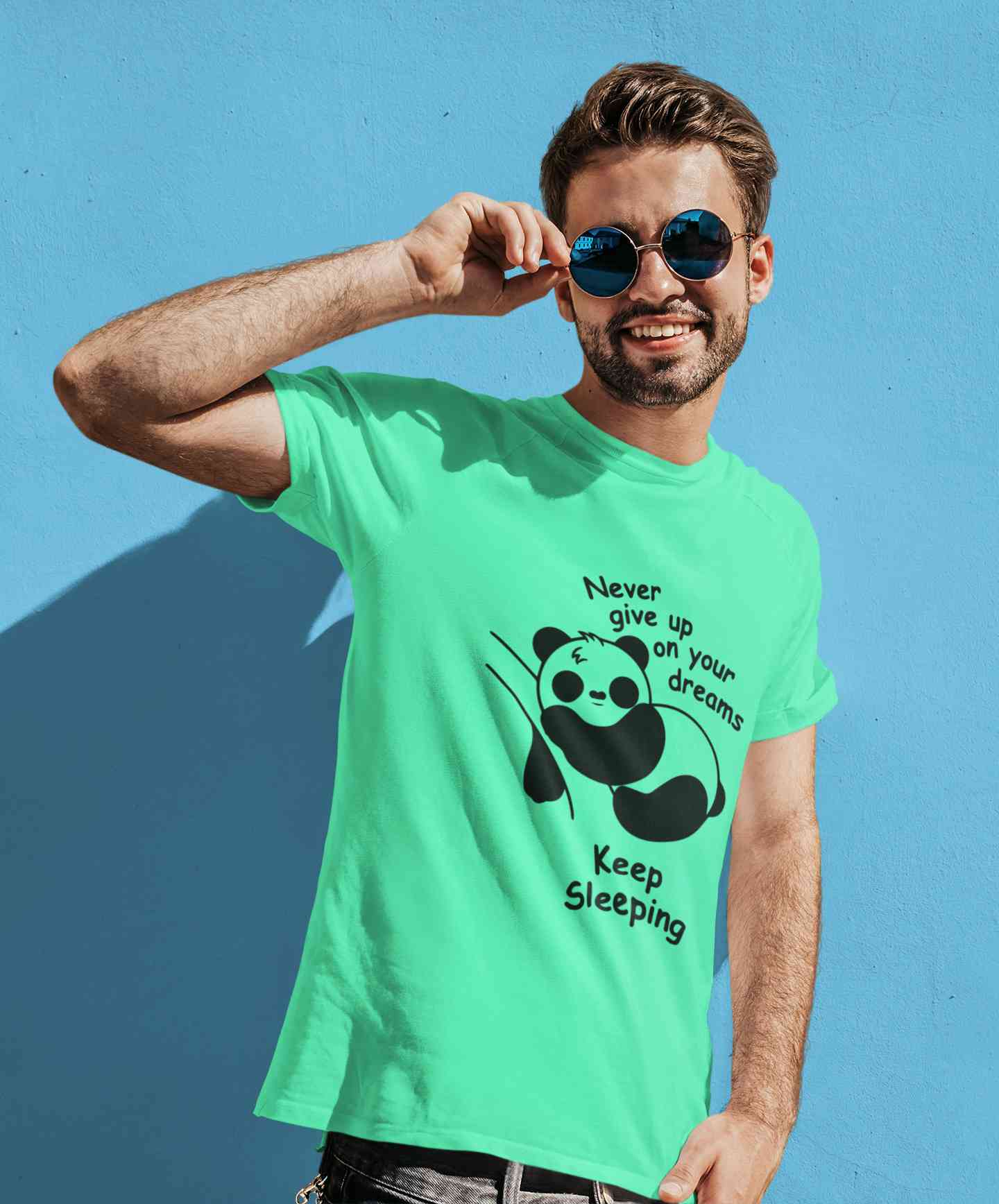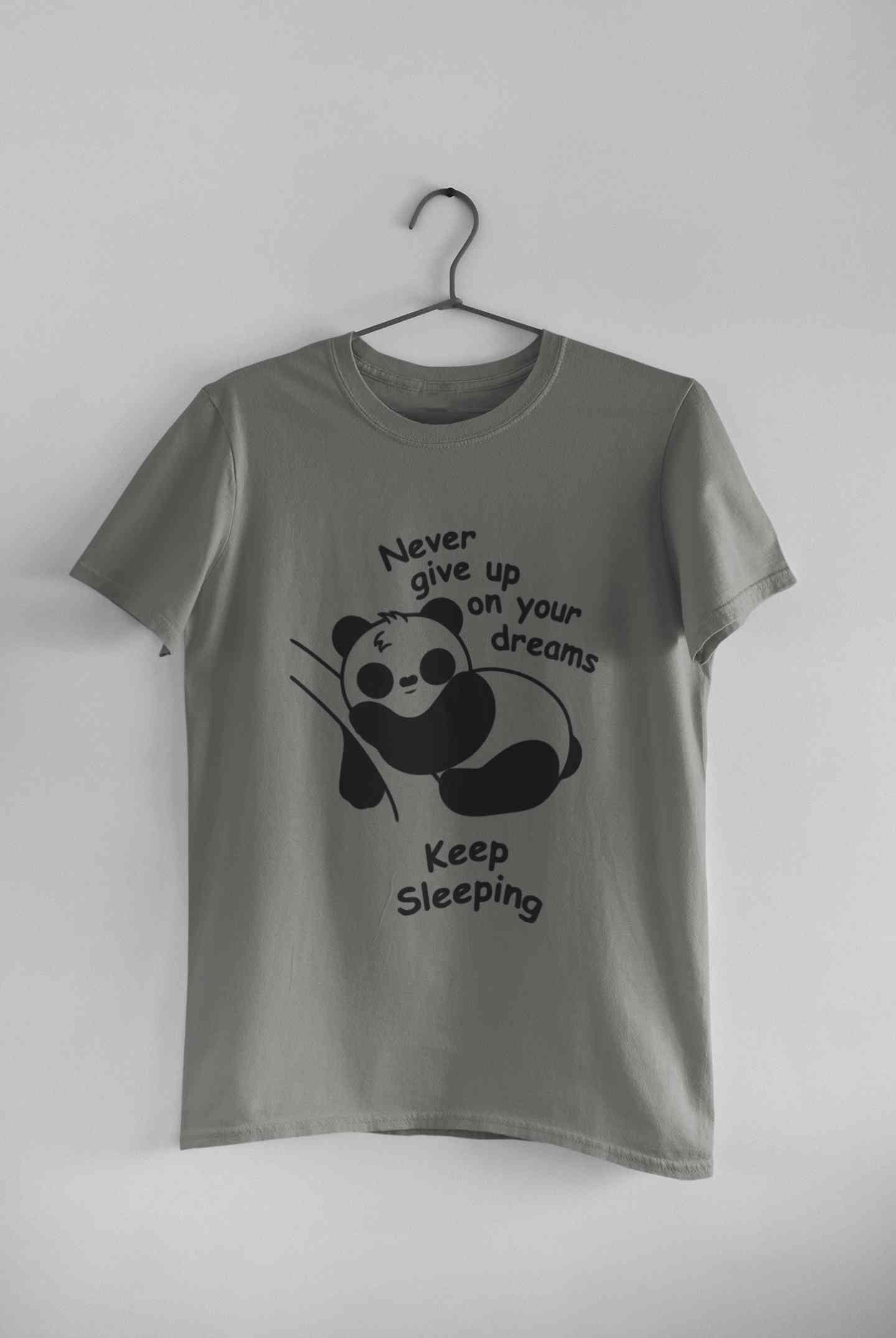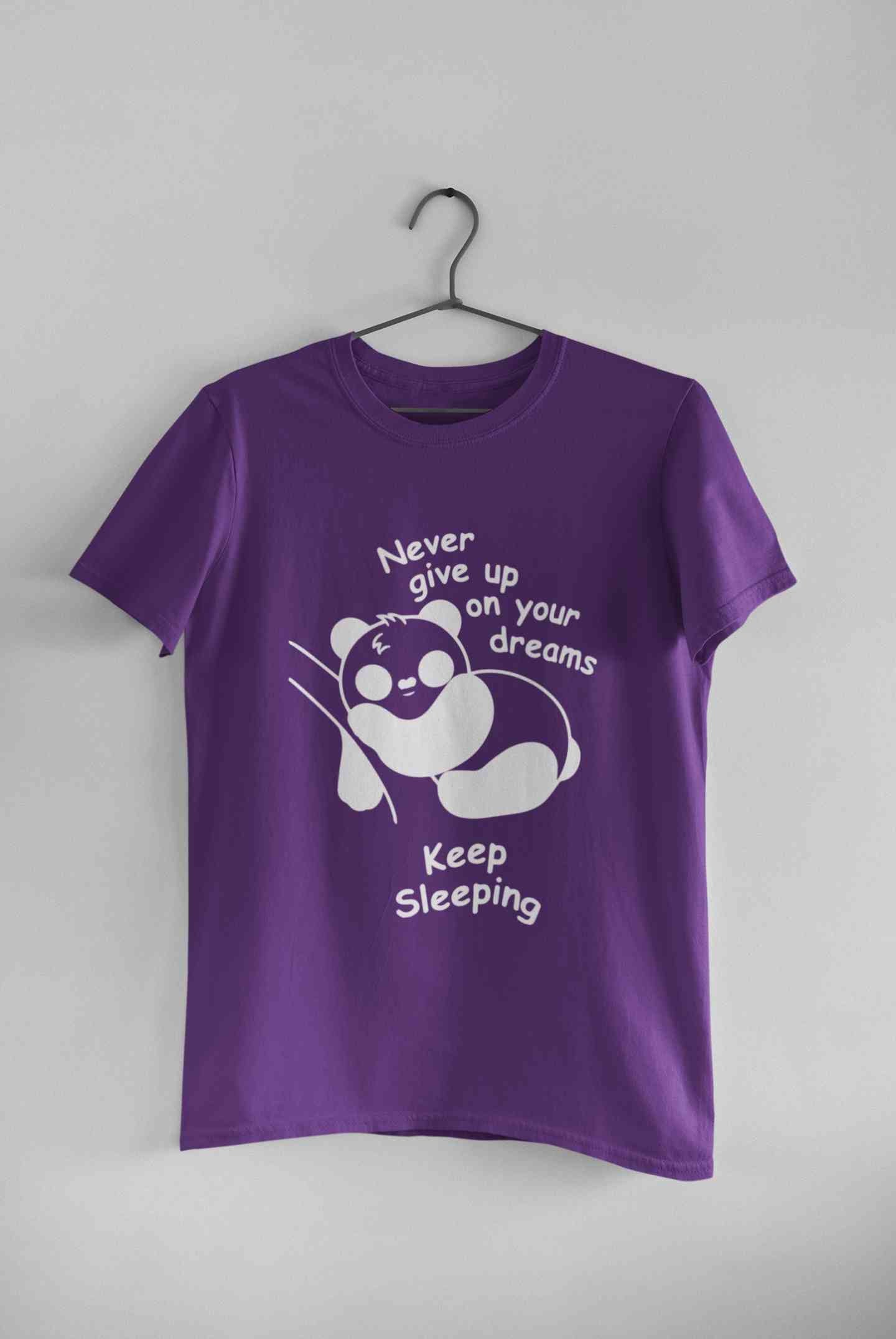 Never Give Up On Your Dream Keep Sleeping Funny Graphic Quotes Mens Half Sleeves T-shirt- FashionRazor