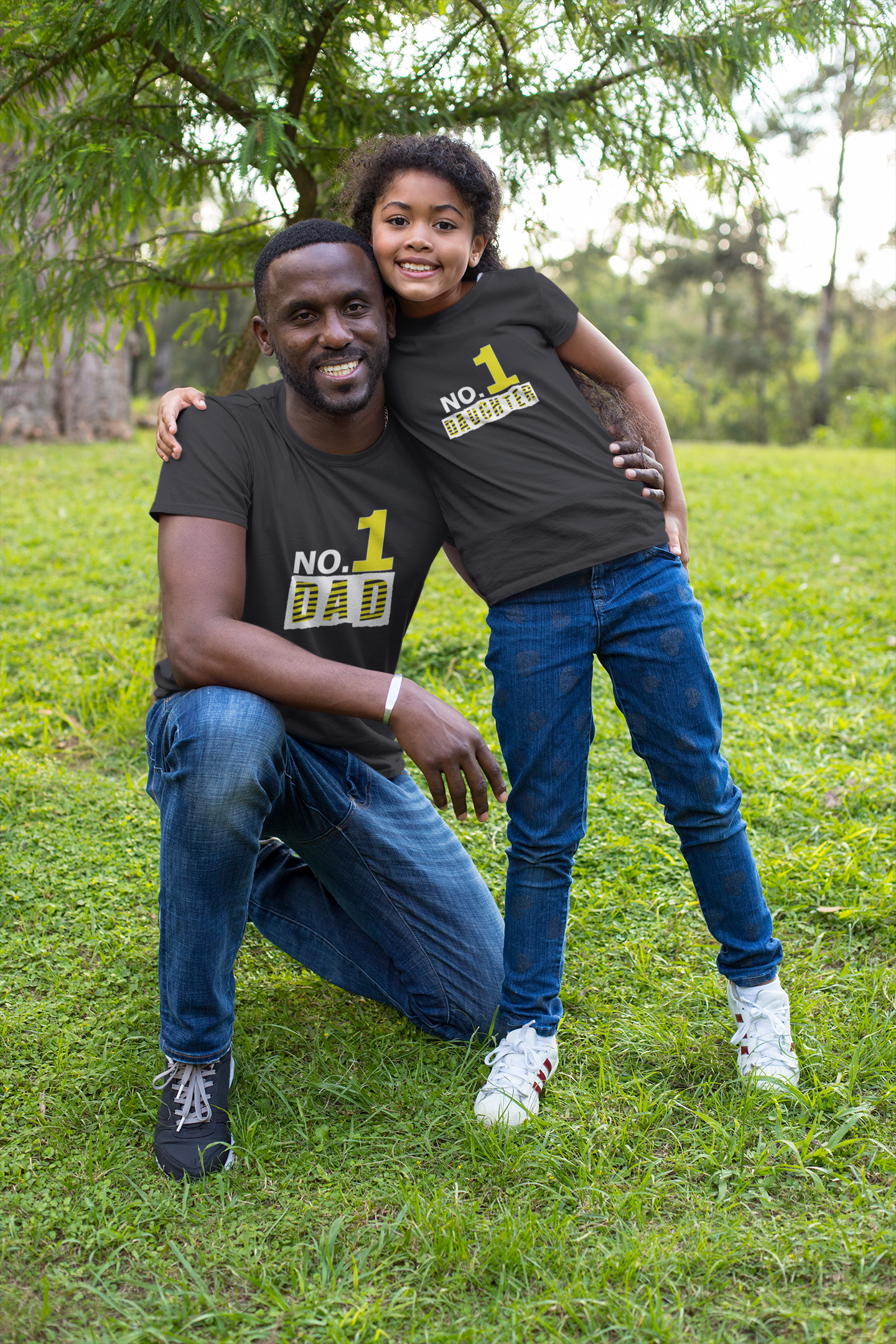 No. 1 Dad Father and Daughter Black Matching T-Shirt- FashionRazor