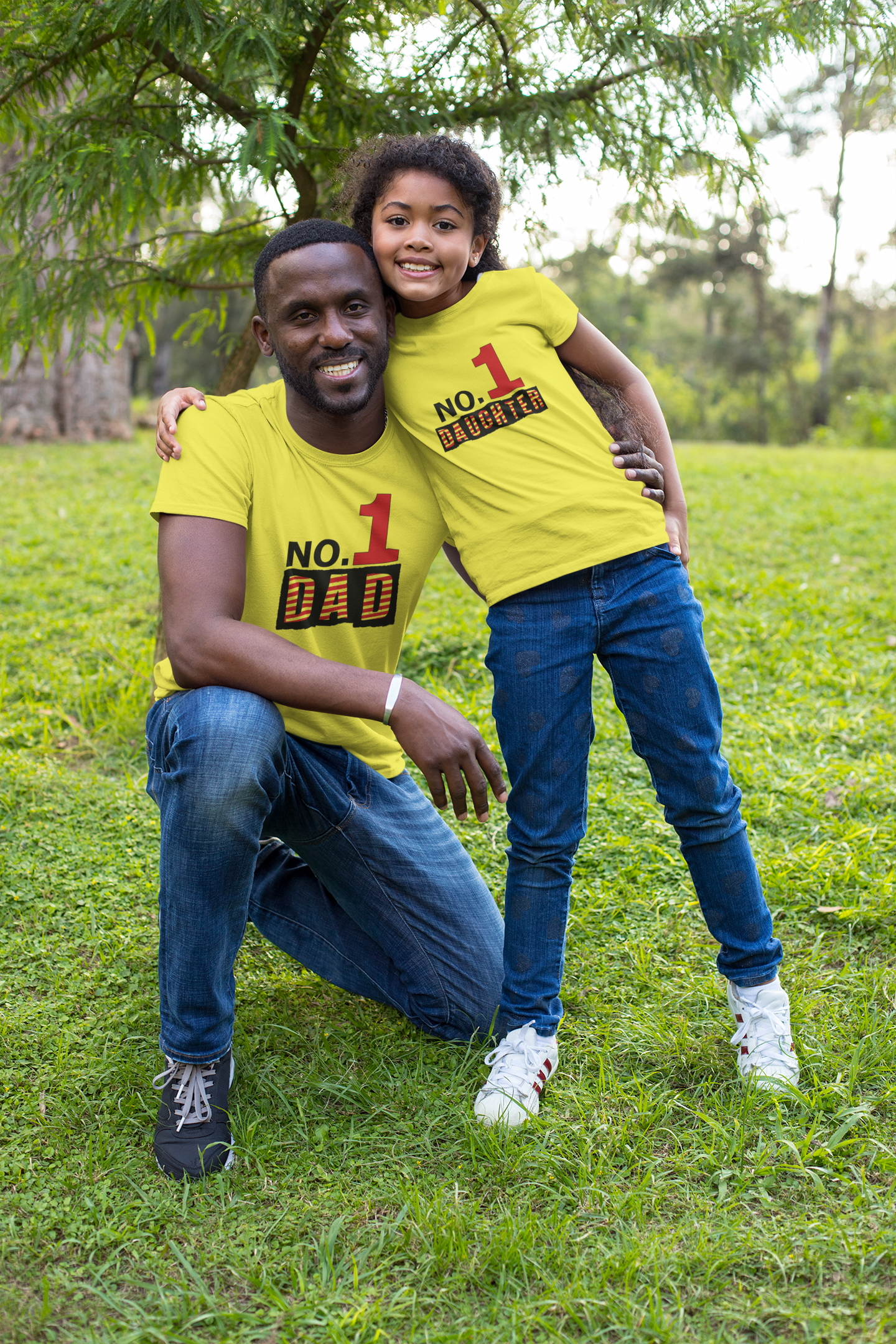 No. 1 Dad Father and Daughter Yellow Matching T-Shirt- FashionRazor