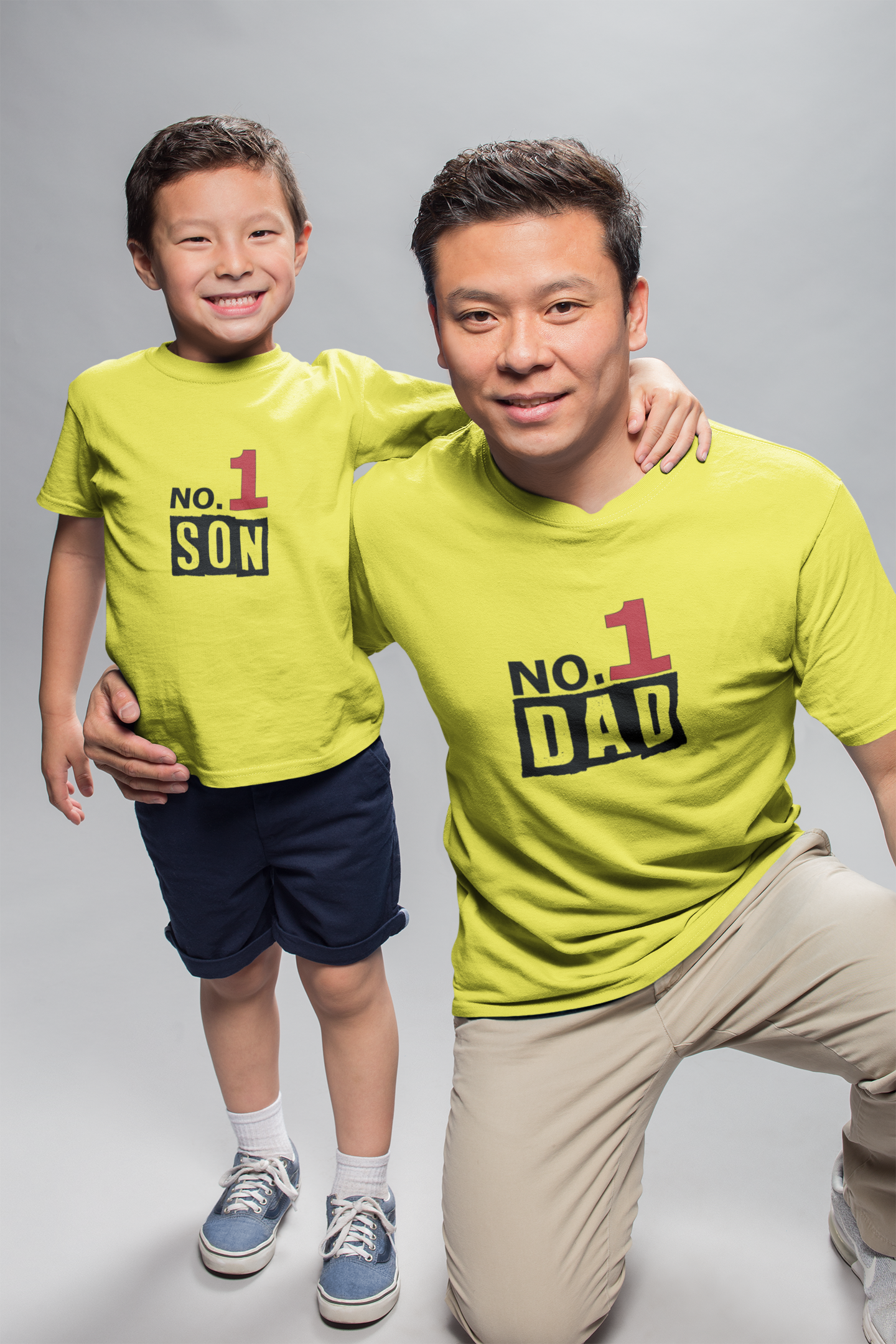 No 1 Dad Father and Son Yellow Matching T-Shirt- FashionRazor