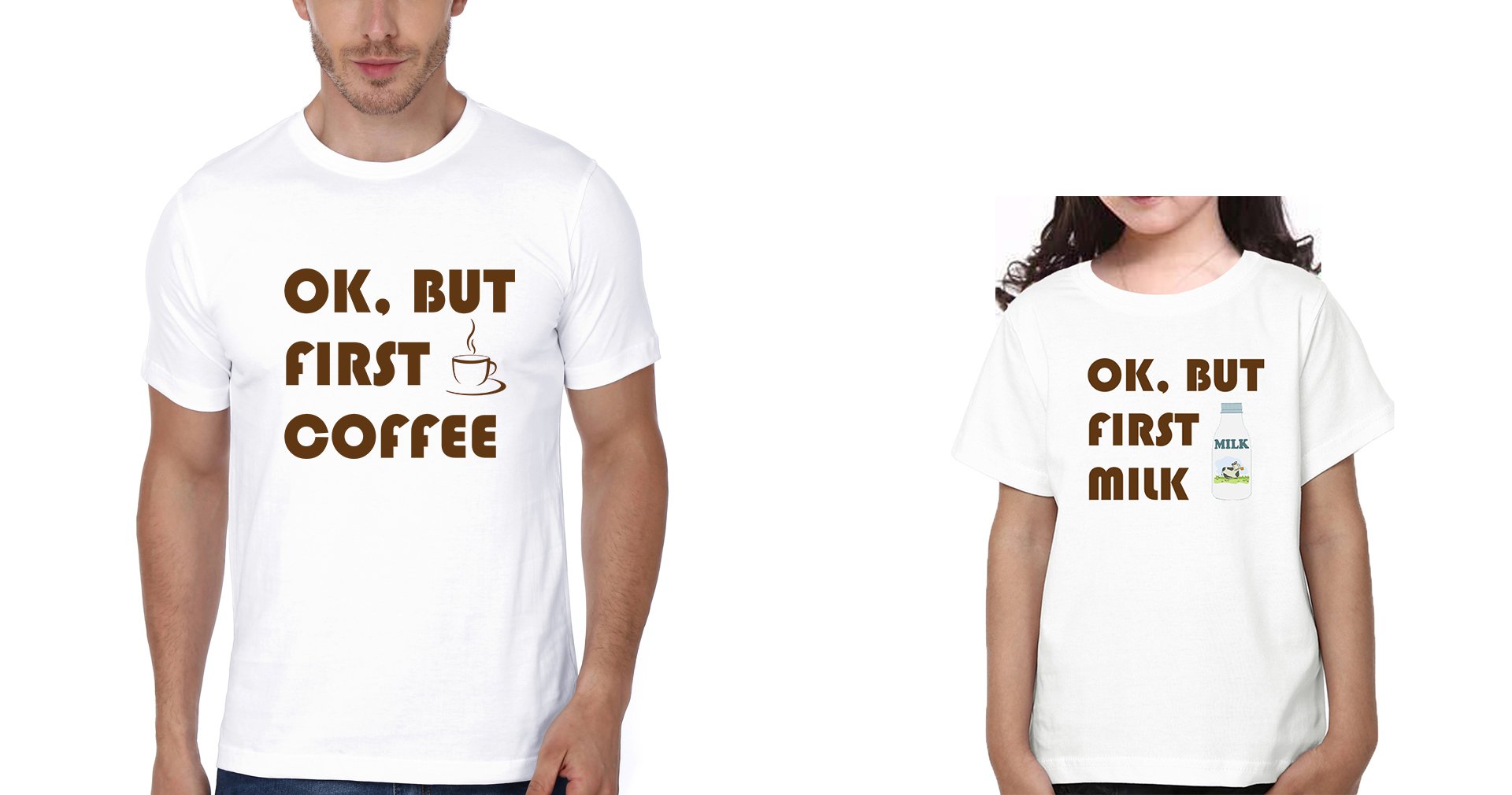 Ok But First Coffee Ok But First Milk Father and Daughter Matching T-Shirt- FashionRazor