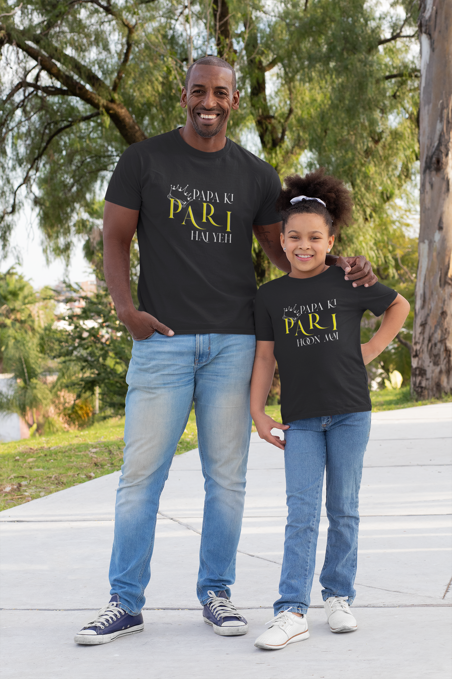 Papa Ki Pari Hu Mai Father and Daughter Black Matching T-Shirt- FashionRazor