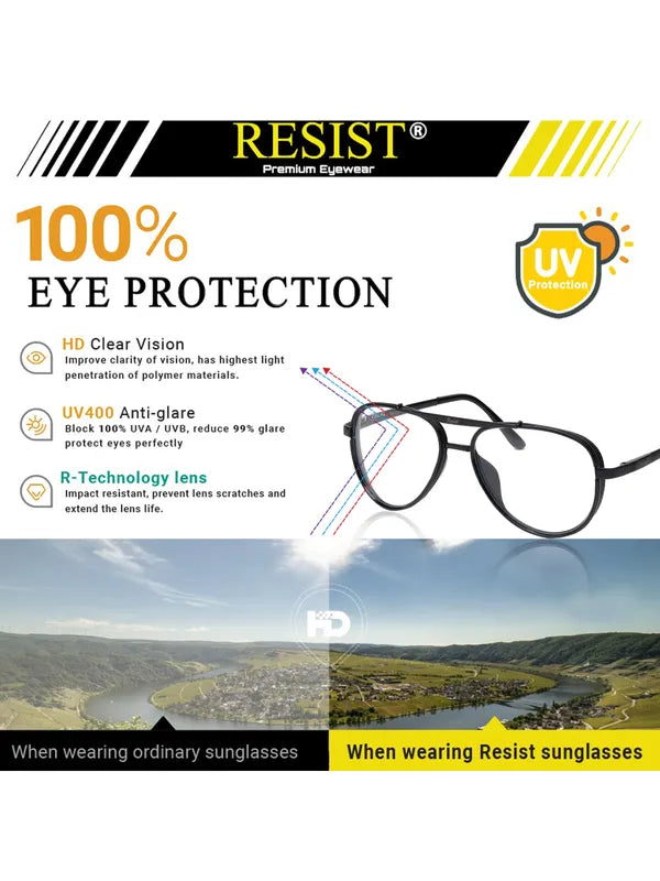 Experience cutting-edge protection and timeless style with these Photochromic and UV-Protected Black Aviator Sunglasses, designed for both men and women. Featuring photochromic polycarbonate lenses, these sunglasses adjust automatically to light conditions, darkening under sunlight and clearing indoors, providing superior comfort and clarity. With 100% UV protection, they effectively shield your eyes from harmful UVA and UVB rays. The high-definition lenses maintain color accuracy and reduce glare, while the durable, shatterproof construction makes these aviators perfect for any adventure, from city streets to outdoor escapades.