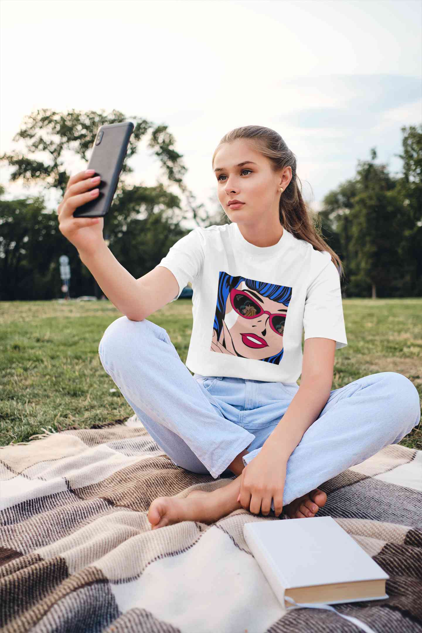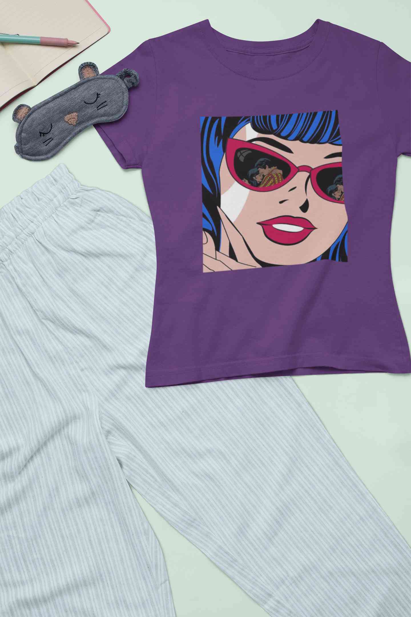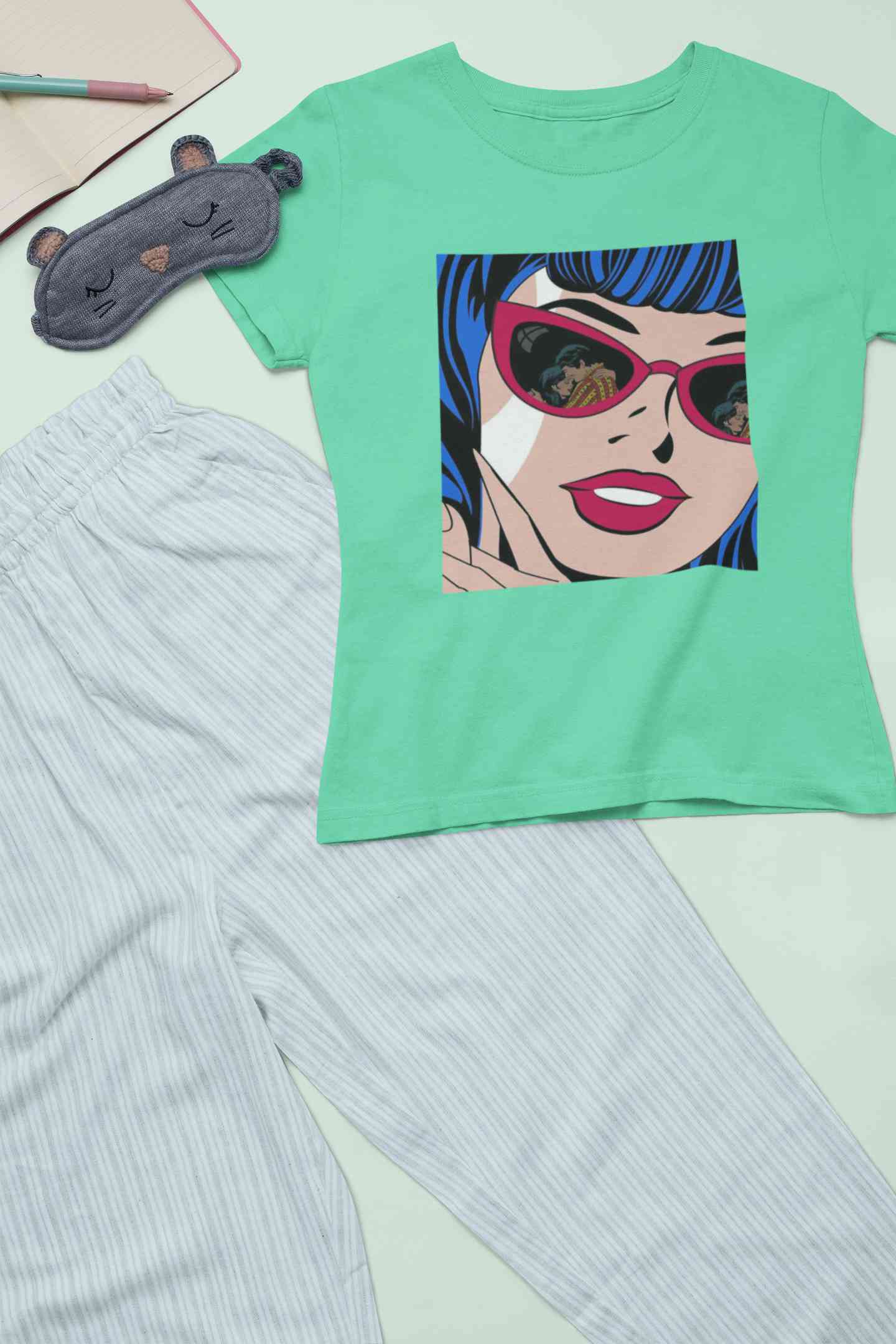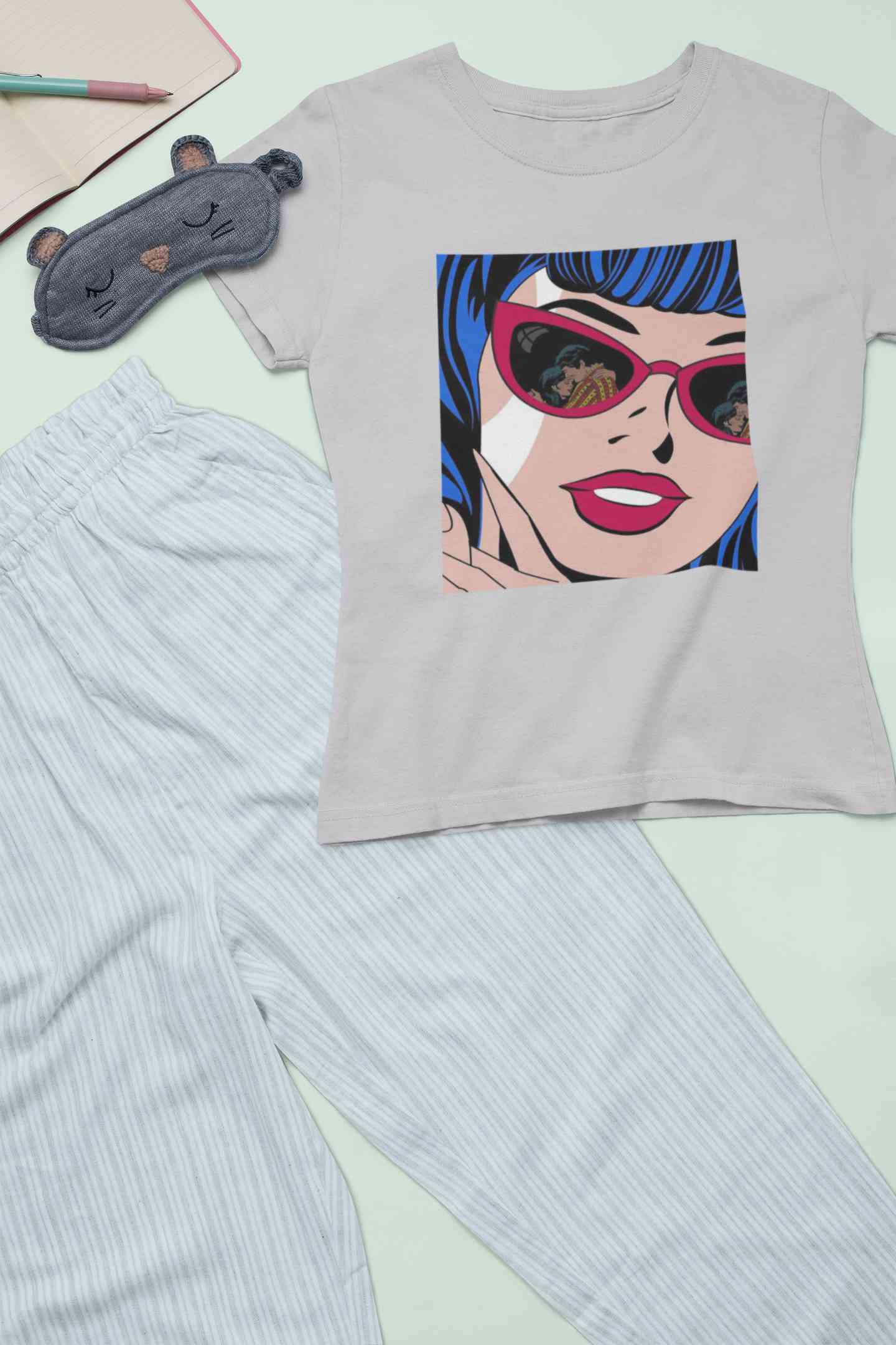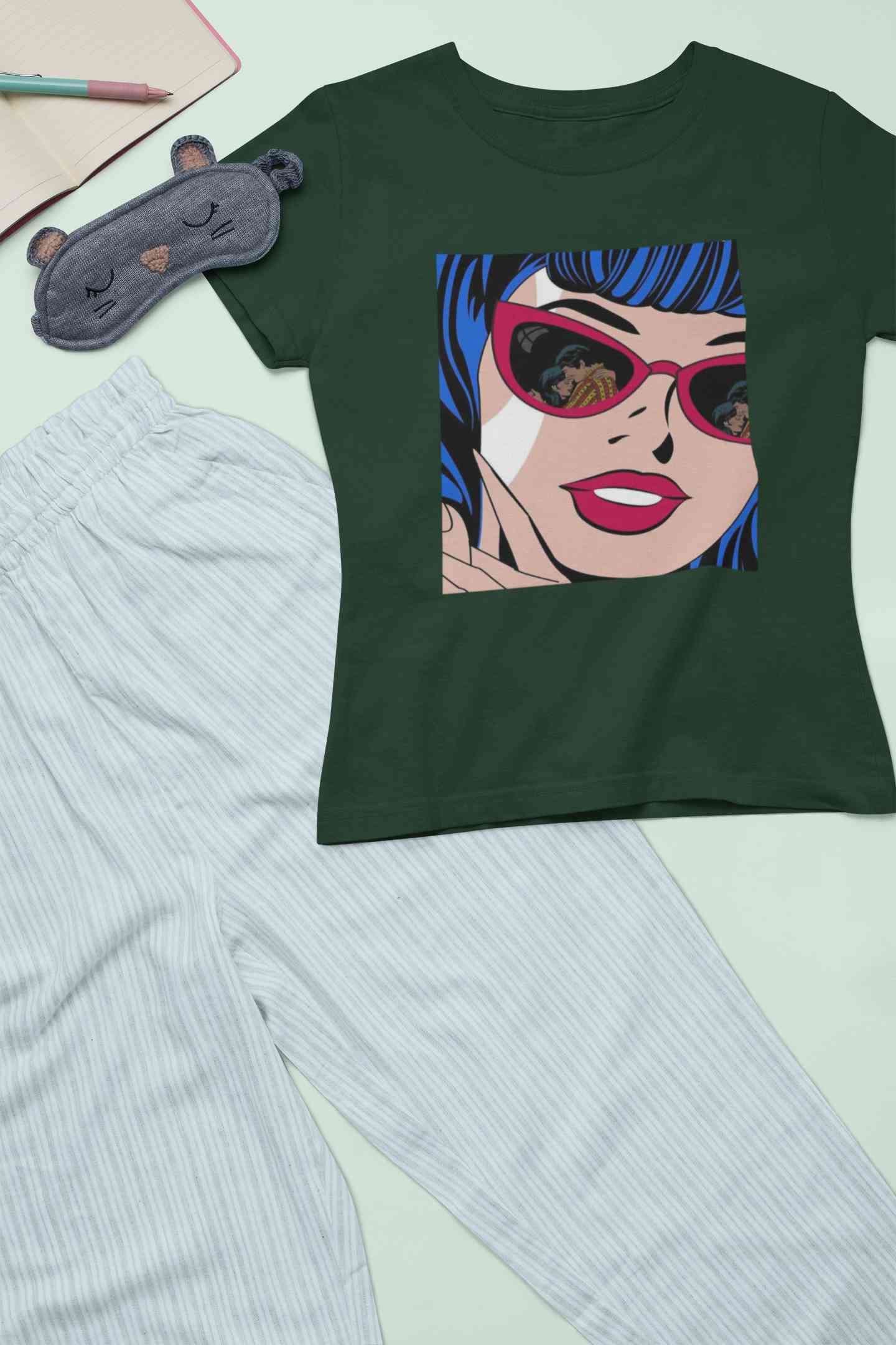 Pop Art Sunglasses Girl Women Half Sleeves T-shirt- FashionRazor