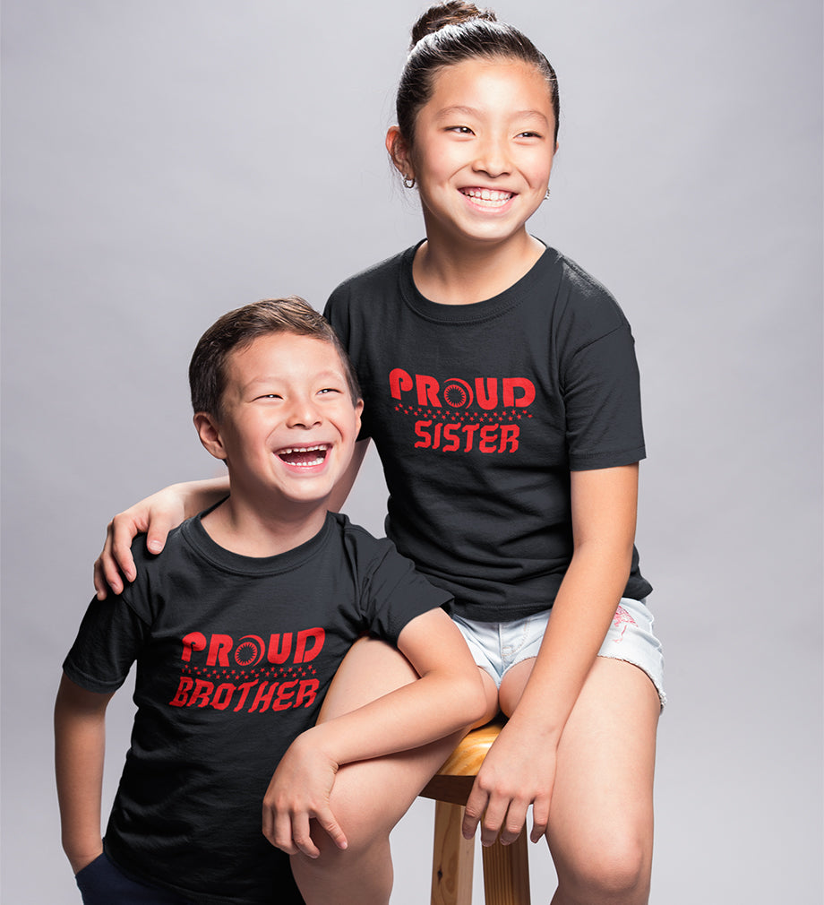 Proud Brother-Sister Kid Half Sleeves T-Shirts -FashionRazor