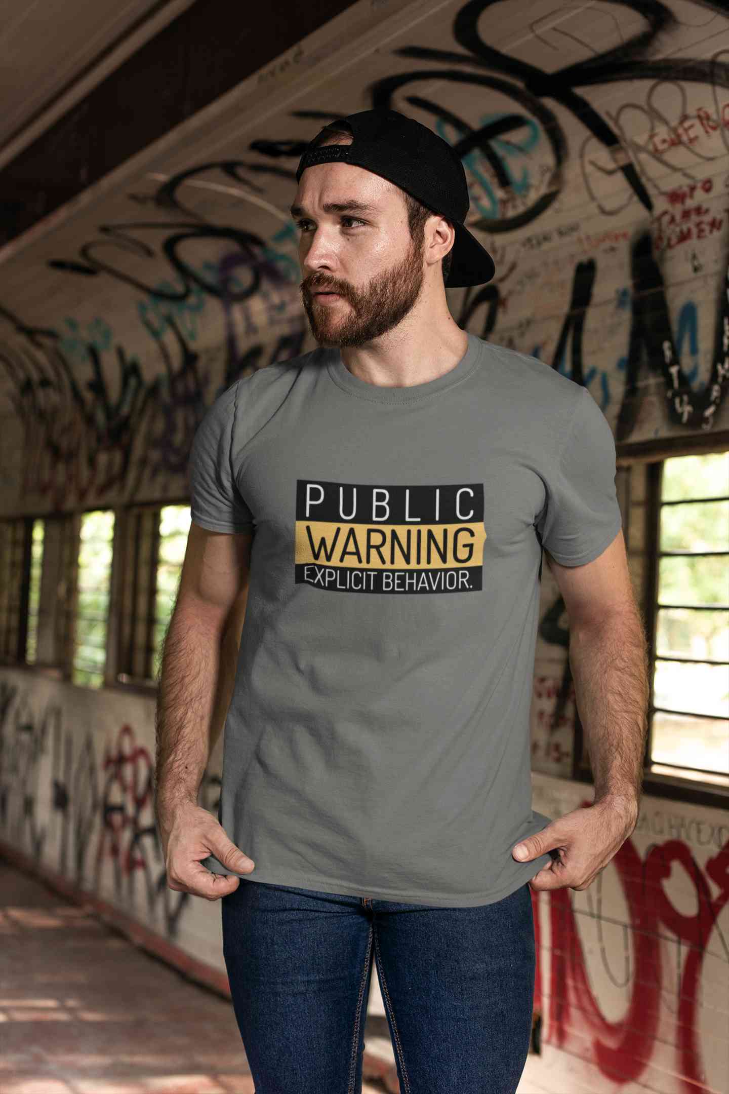 Public Warning Quotes Mens Half Sleeves T-shirt- FashionRazor