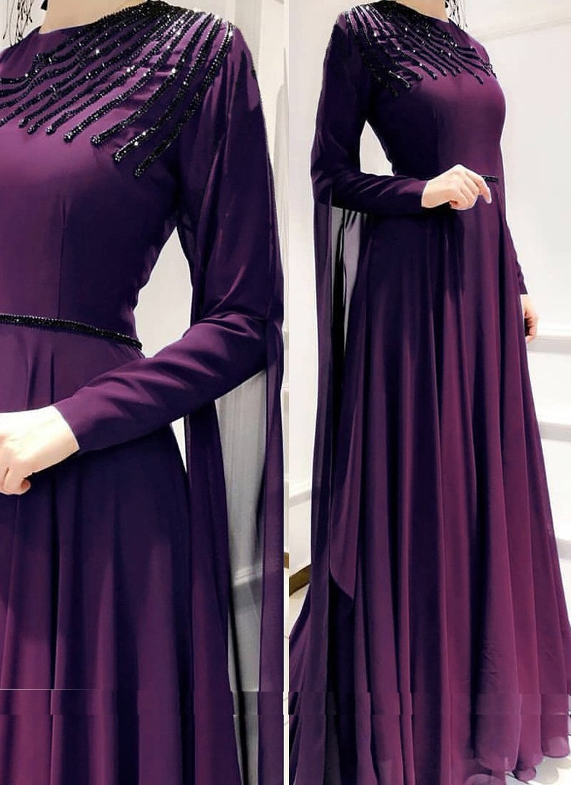 This purple Georgette readymade gown is including the lovely glamorous displaying the sense of cute and graceful. This charming attire is displaying some wonderful pure handwork done with beautiful long sleeves.