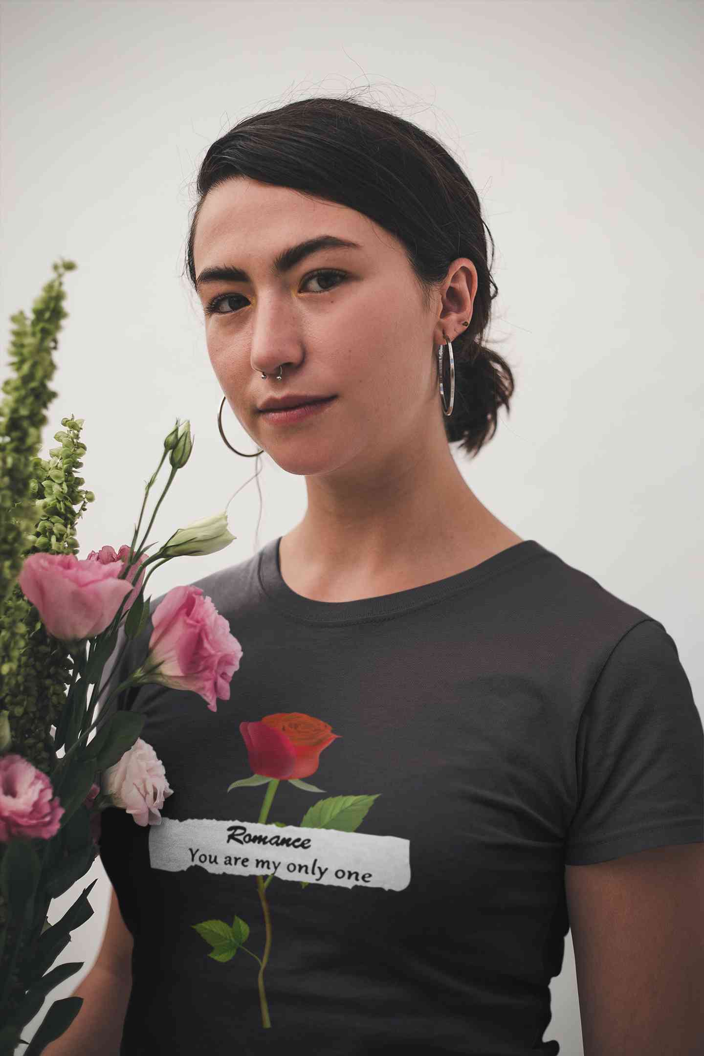 Romance Slogan Rose Printed Women Half Sleeves T-shirt- FashionRazor