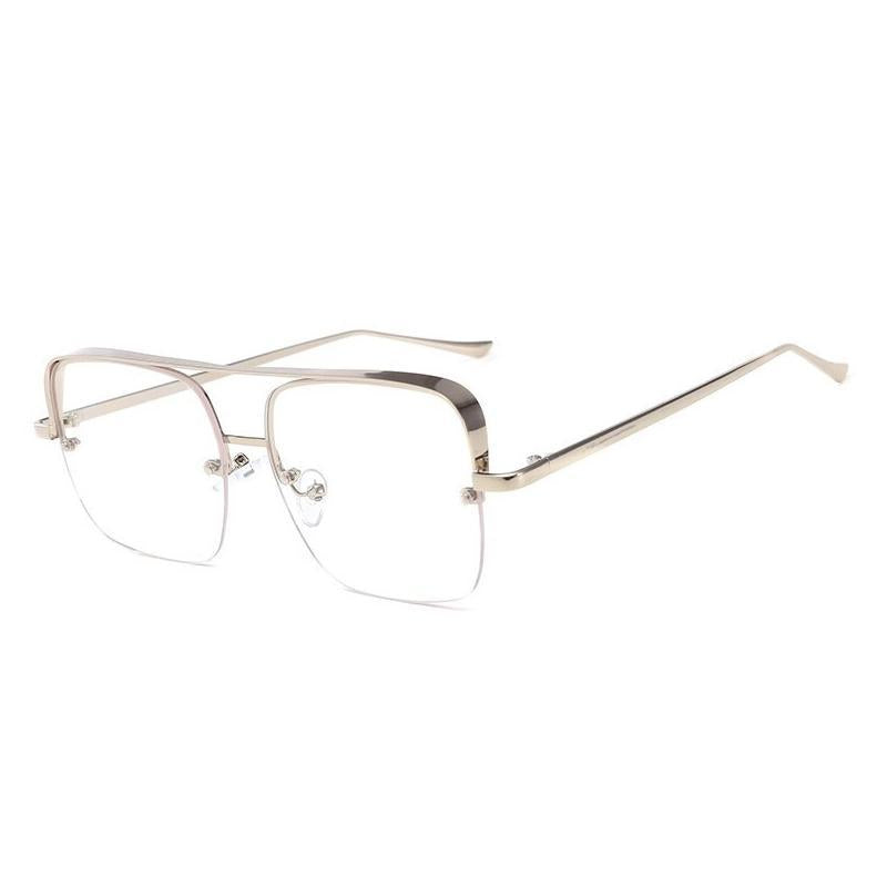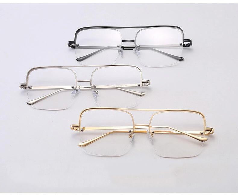 Square Glasses Frame Fashion Double Beam Metal Eyewear Frame Men Women Optical - FashionRazor