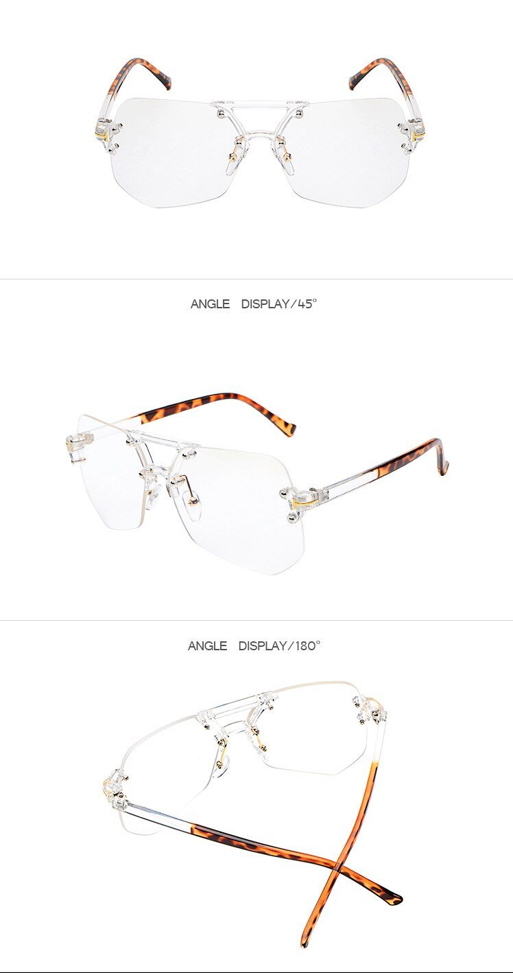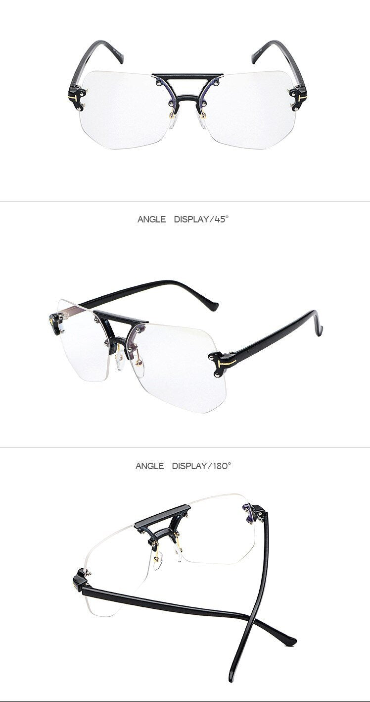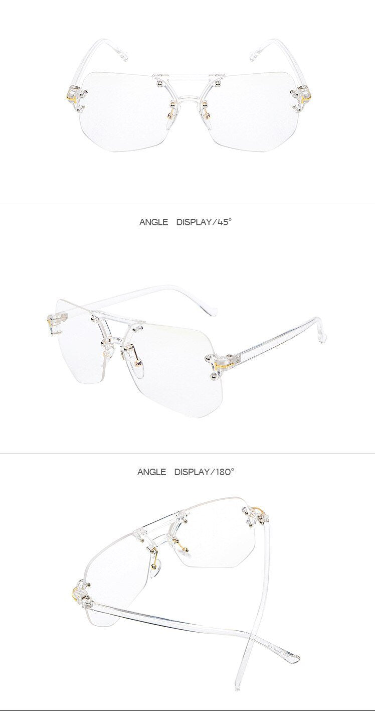 Square Hip Hop Fashion Brand Designer rimless Sunglasses Frame Men Women - FashionRazor