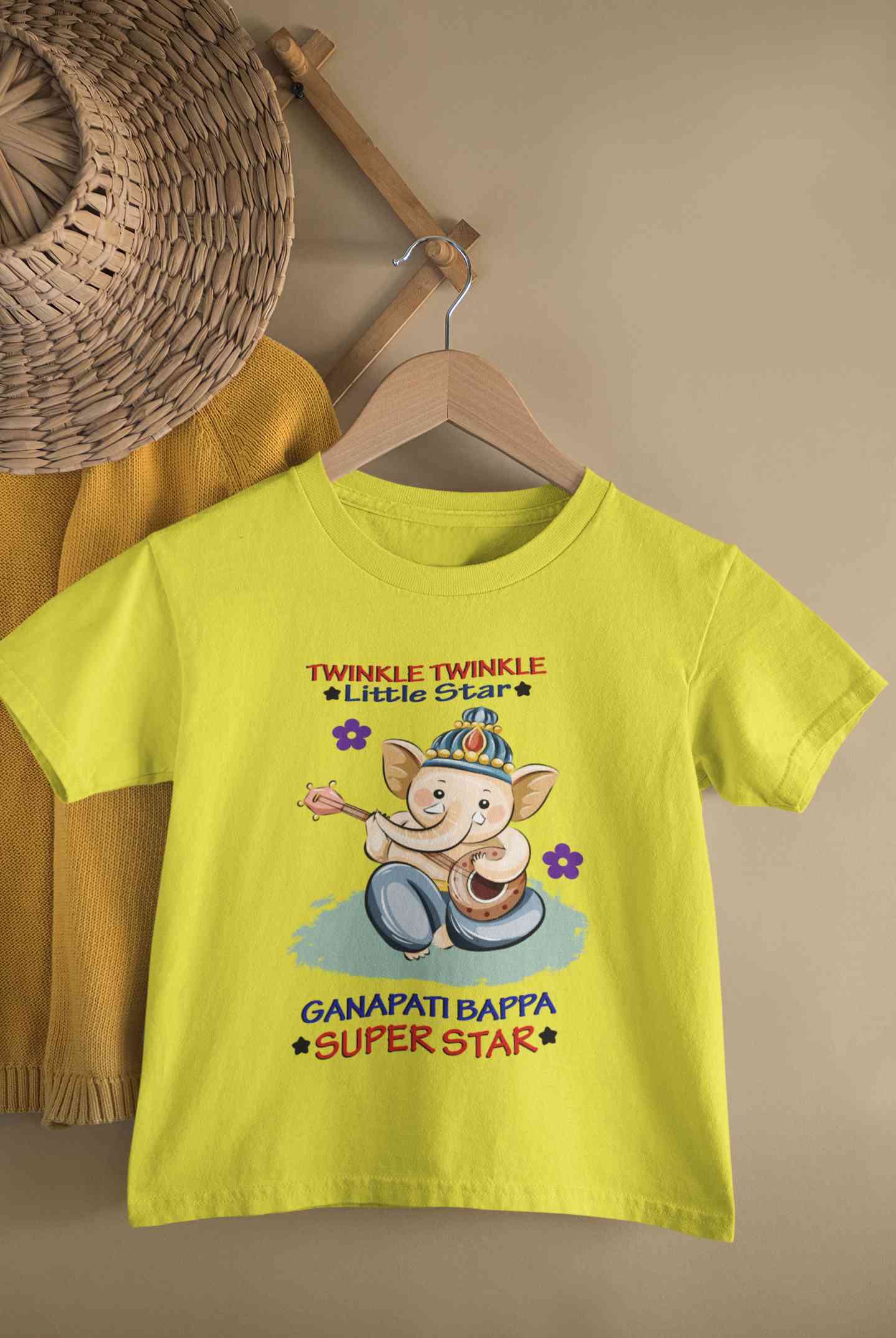 Twinkle Twinkle Little Star Ganpati Bappa Superstar Ganesh Chaturthi Half Sleeves T-Shirt For Girls -FashionRazor