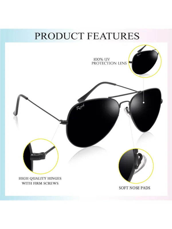 Description: Elevate your look with these UV Protected Black Aviator Sunglasses for Men & Women. Made with high-quality glass lenses, these aviators provide exceptional clarity, scratch resistance, and reduced glare thanks to their multi-layer reflection coating. The sleek black metal frame is designed for stability and comfort, making it perfect for daily wear. With 100% protection against UVA/UVB rays, these sunglasses keep your eyes safe while preserving color integrity. Whether you’re hiking, boating, or just out for a casual day, these stylish black aviators are the perfect blend of functionality and fashion.