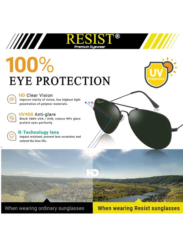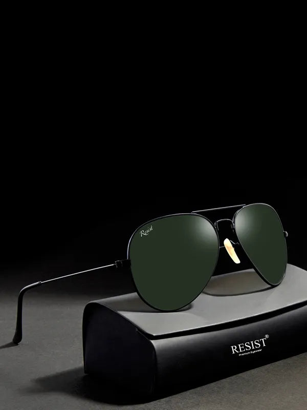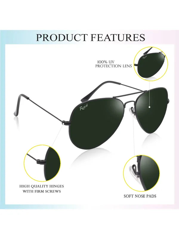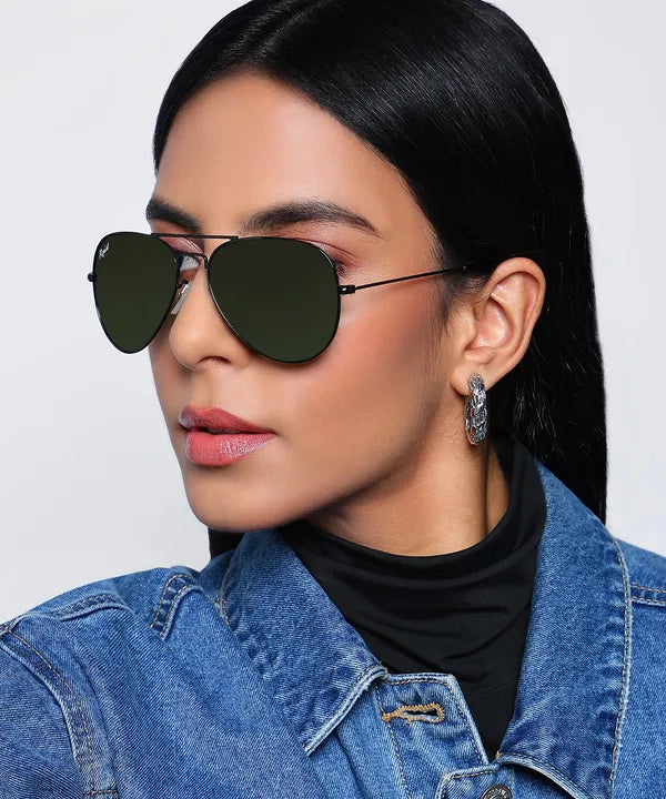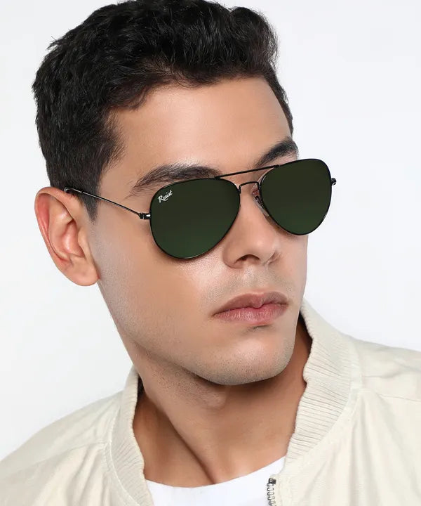 UV Protected Black Green Aviator Sunglasses For Men & Women- FashionRazor