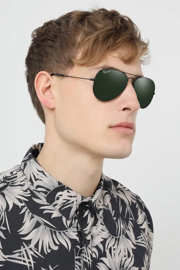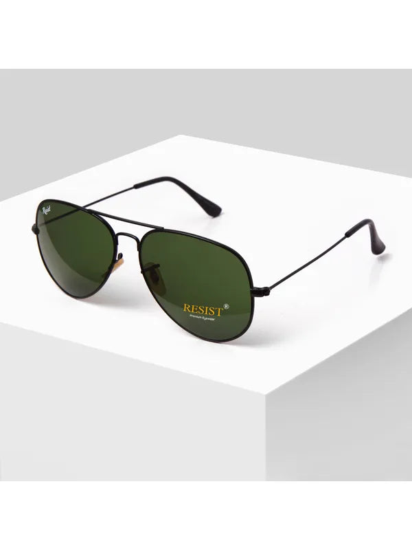 Description: Enhance your eyewear collection with these UV Protected Black & Green Aviator Sunglasses for Men and Women. Featuring premium glass lenses that offer superior clarity and scratch resistance, these sunglasses are designed with a multi-layer reflection coating to effectively reduce glare and simplify cleaning. The sleek black metal frame is expertly crafted for stability and comfort, making them perfect for everyday wear and outdoor adventures. With 100% protection against harmful UVA/UVB rays and high-definition lenses for a natural vision experience, these aviators are the ideal blend of style, protection, and functionality for any occasion.