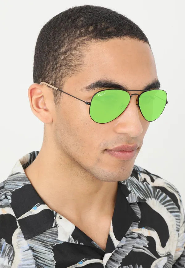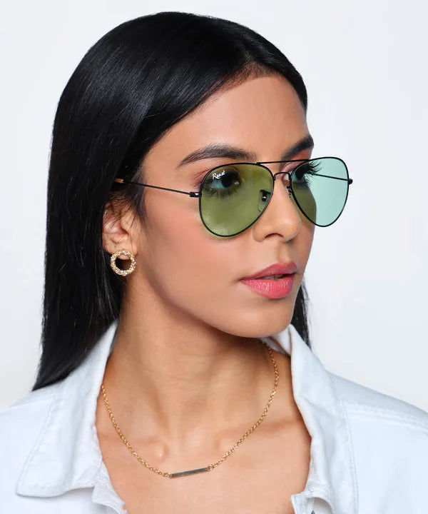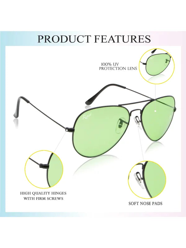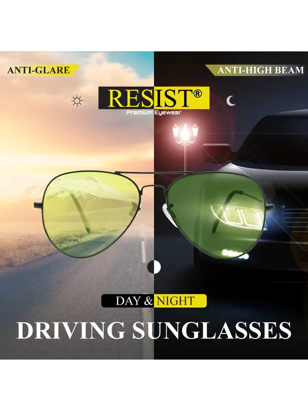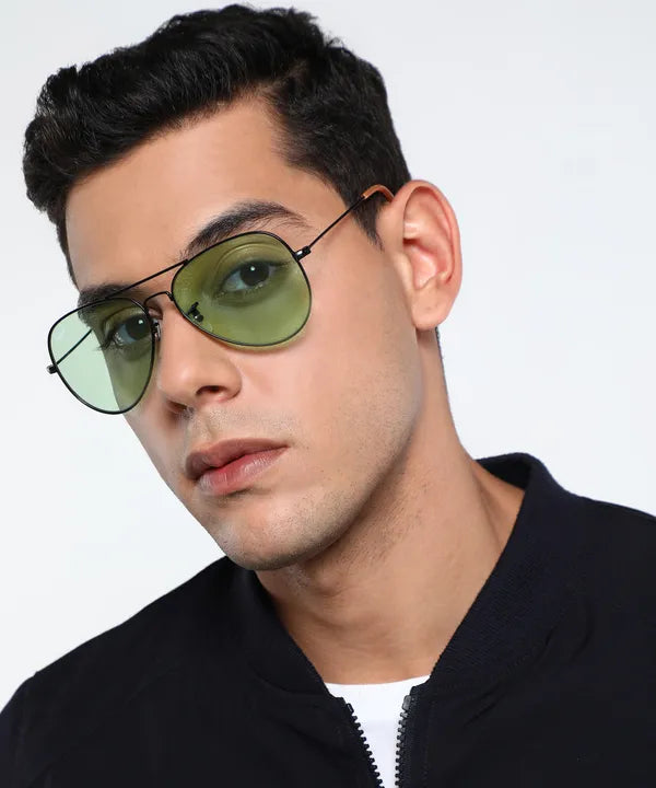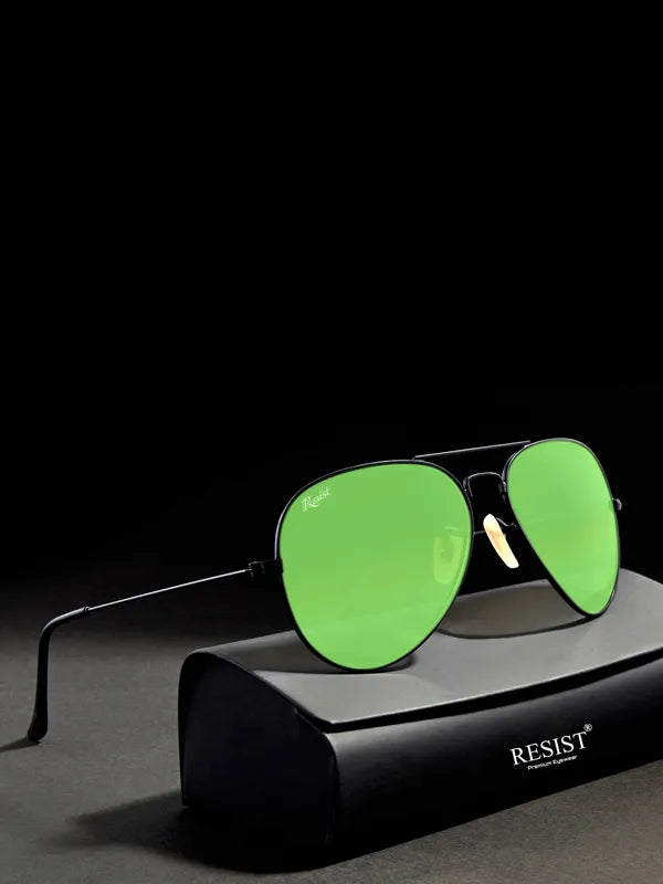 Description: Discover the perfect blend of style and functionality with our UV Protected Black & Green Night Vision Aviator Sunglasses for Men and Women. These sunglasses feature high-quality glass lenses that deliver superior clarity and scratch resistance, complemented by a multi-layer reflection coating that reduces glare and simplifies cleaning. The sleek black metal frame ensures both stability and comfort, making them an ideal choice for everyday wear and outdoor adventures. With 100% protection against harmful UVA/UVB rays and specially designed night vision lenses for enhanced visibility, these aviators are the perfect accessory for any occasion, day or night.