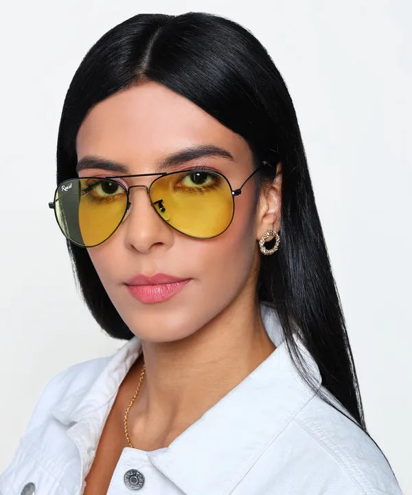 • Timeless Aviator Style: Classic aviator silhouette accented with vibrant yellow for a bold, stylish statement.