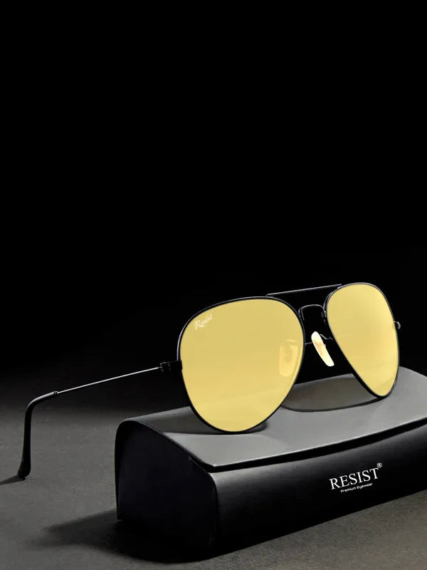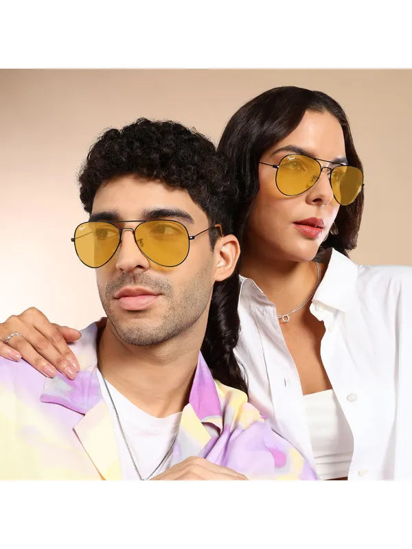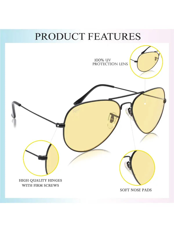 UV Protected Black Yellow Night Vision Aviator Sunglasses for Men and Women- FashionRazor