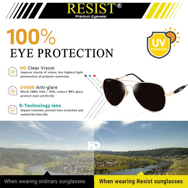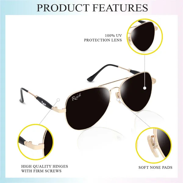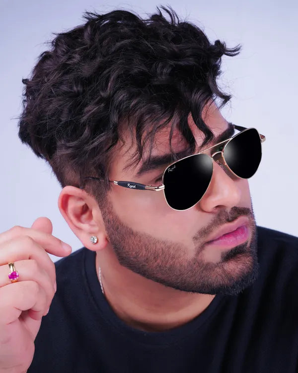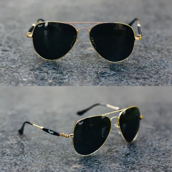 Description: Step up your eyewear game with these UV Protected Gold & Black Aviator Sunglasses for Men & Women. Crafted with high-quality glass lenses, these sunglasses provide unmatched clarity, scratch resistance, and a multi-layer reflection coating to reduce glare and make cleaning effortless. The elegant gold metal frame, paired with a sleek black finish, offers a stable and comfortable fit, making them perfect for everyday wear and outdoor adventures. With 100% protection against UVA/UVB rays and high-definition lenses for natural vision, these aviators combine style and functionality, making them a must-have accessory for any occasion.
