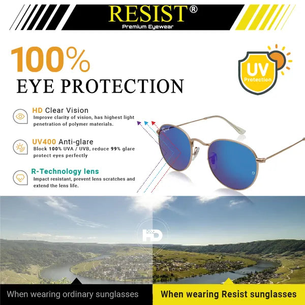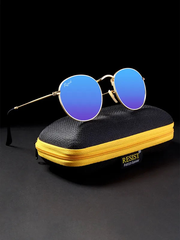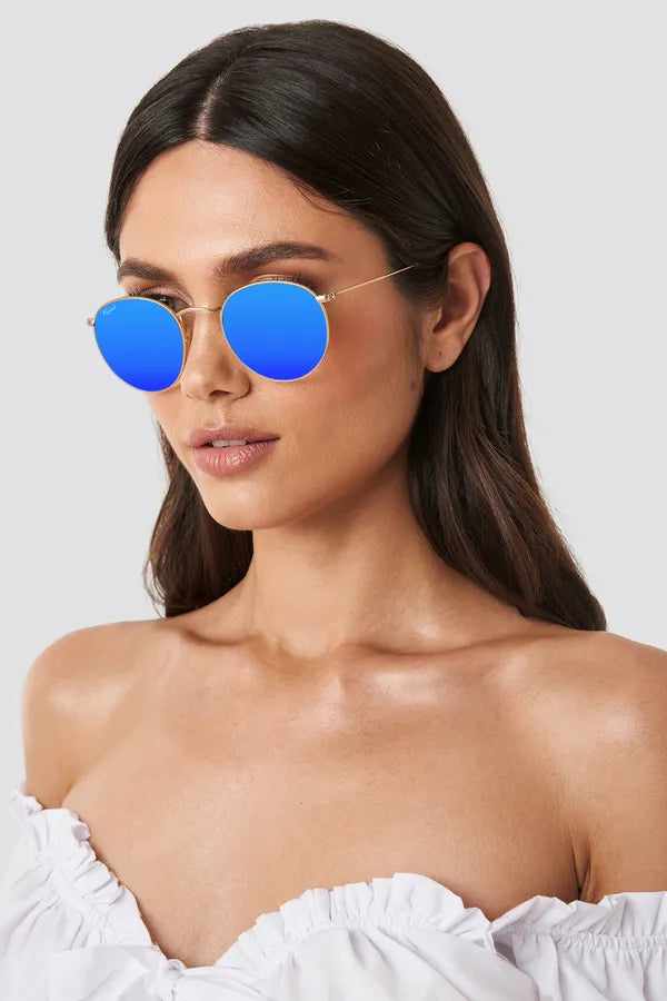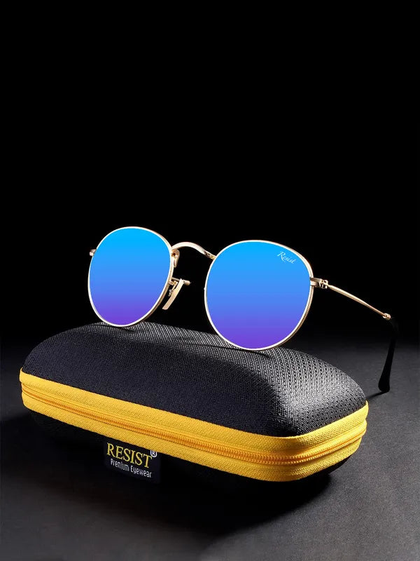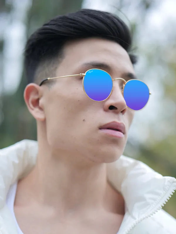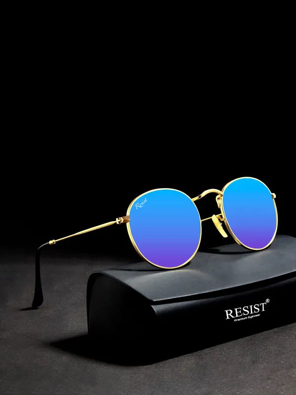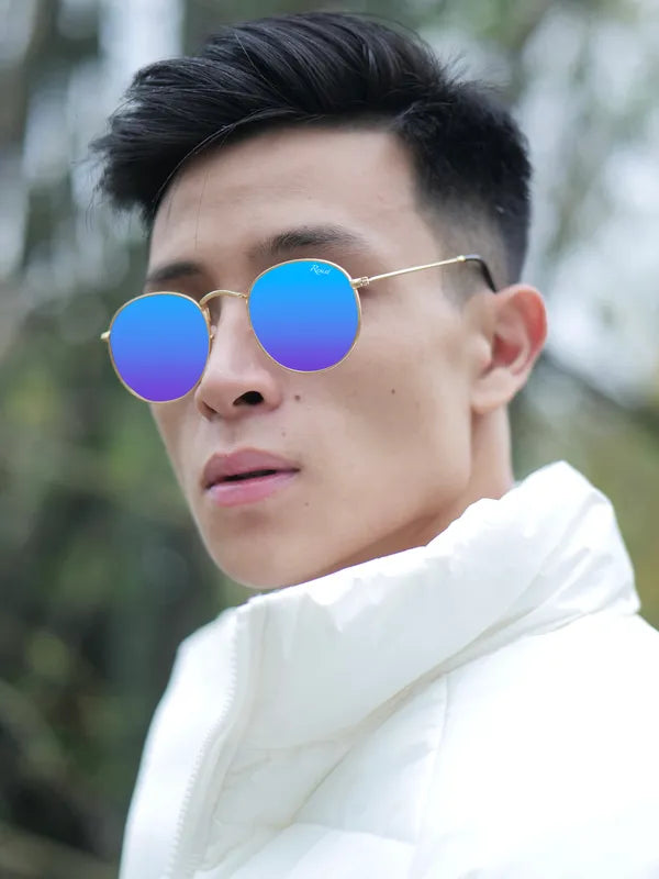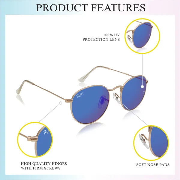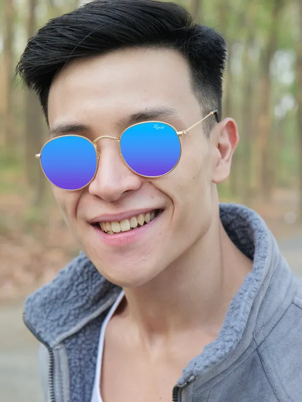 Turn heads and protect your eyes with these Gold Blue Reflector Round Sunglasses—order now to experience style, clarity, and ultimate UV protection!