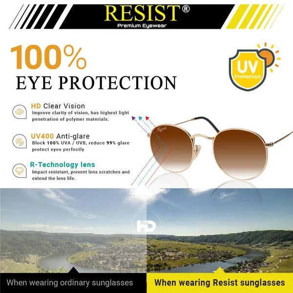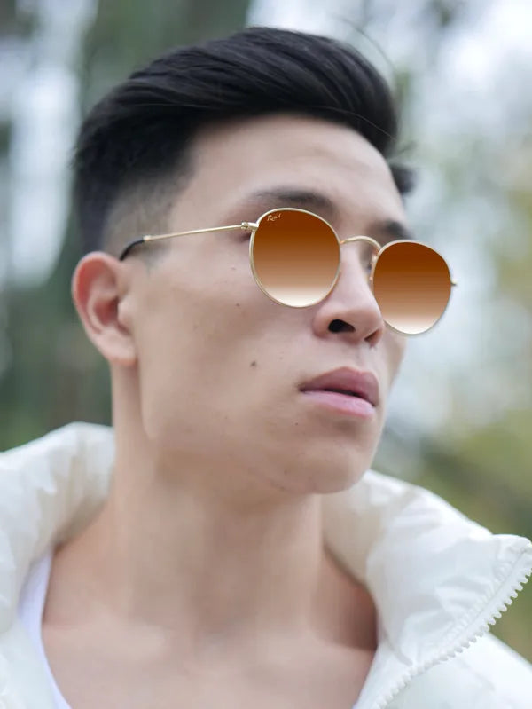 Stand out with timeless style and superior UV protection—order your Gold Brown Gradient Round Sunglasses today and enjoy sophistication and safety in one!