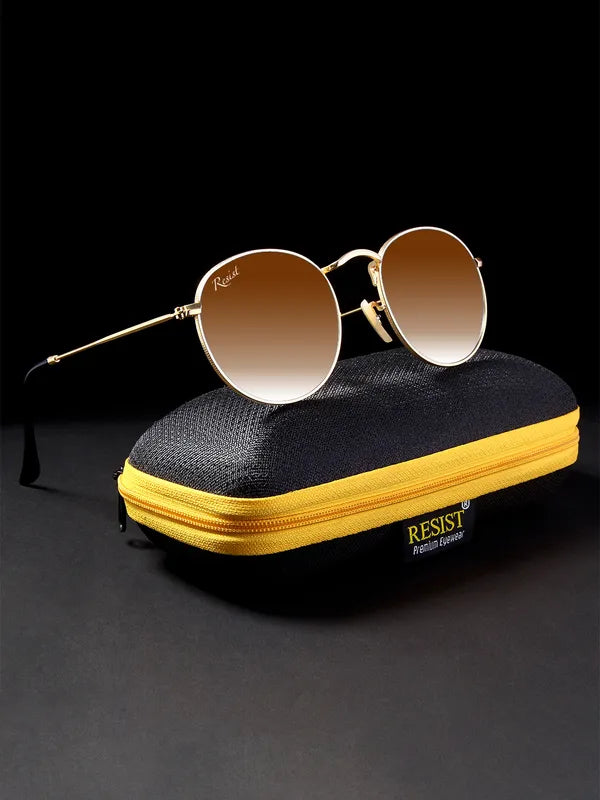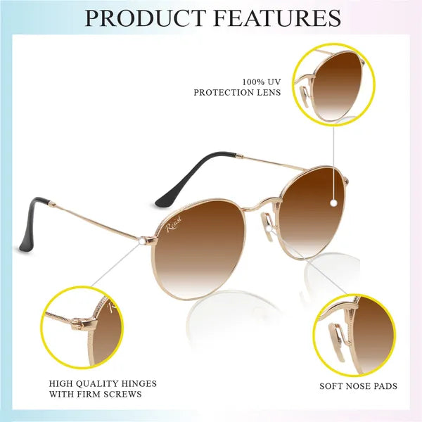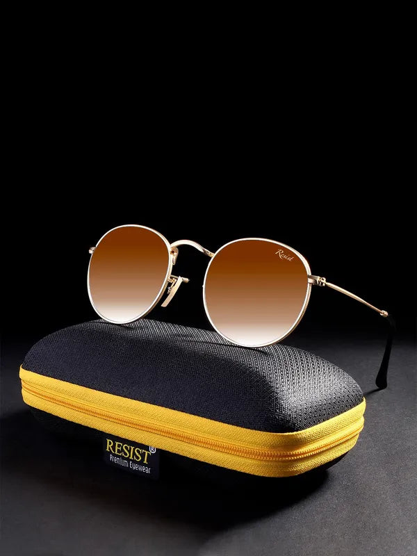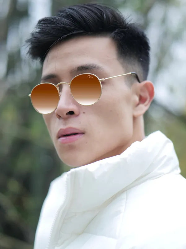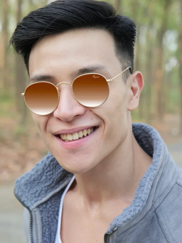 UV Protected Gold Brown Gradient Round Sunglasses For Men & Women- FashionRazor