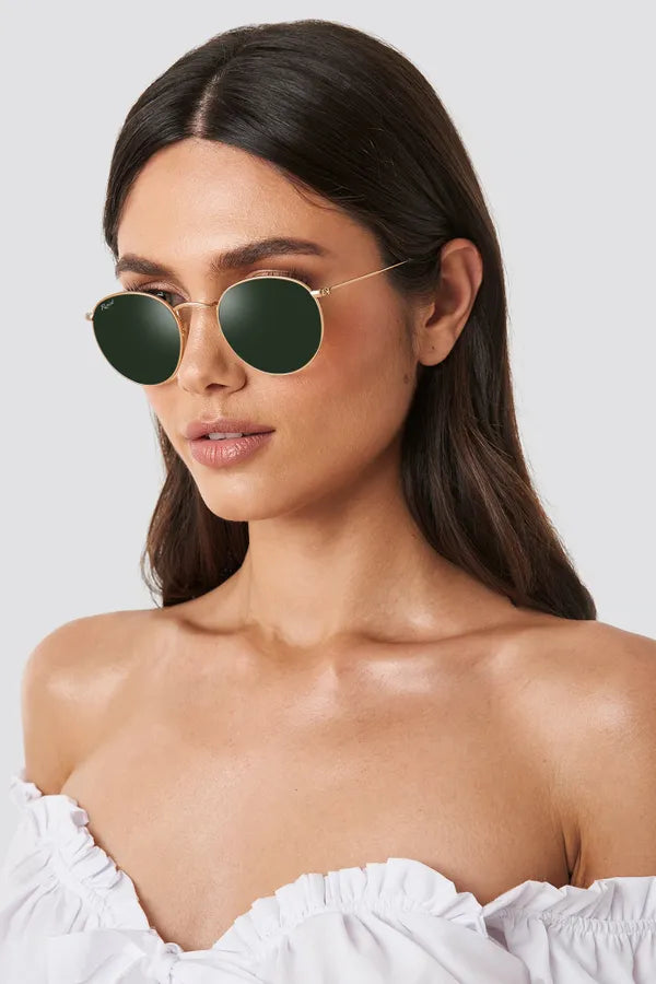 Enhance your style with these Gold Green Round Sunglasses that combine superior UV protection with timeless design—order now for an elevated look and safe vision!