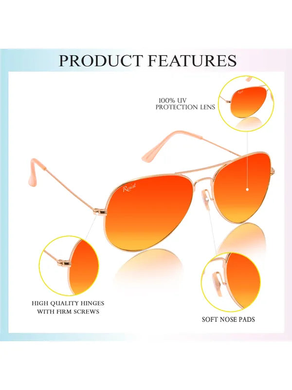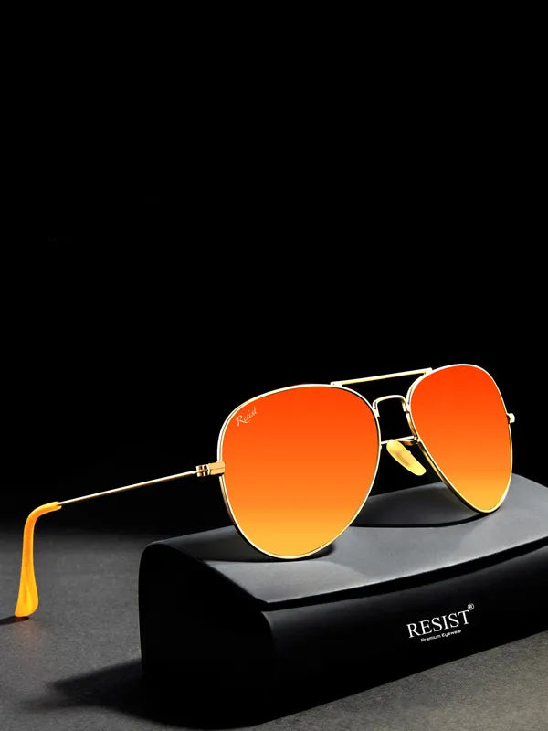 Elevate your eyewear game with our UV Protected Gold Orange Reflector Aviator Sunglasses, designed for both men and women who crave style and performance. Featuring premium glass lenses that offer superior clarity and scratch resistance, these sunglasses are equipped with a multi-layer reflection coating to reduce glare and enhance visibility. Whether you're hiking, fishing, boating, or just enjoying a sunny day, these aviators not only protect your eyes from harmful UVA and UVB rays but also ensure you make a bold fashion statement. With a sleek design that prioritizes comfort and stability, you'll enjoy wearing them every day.