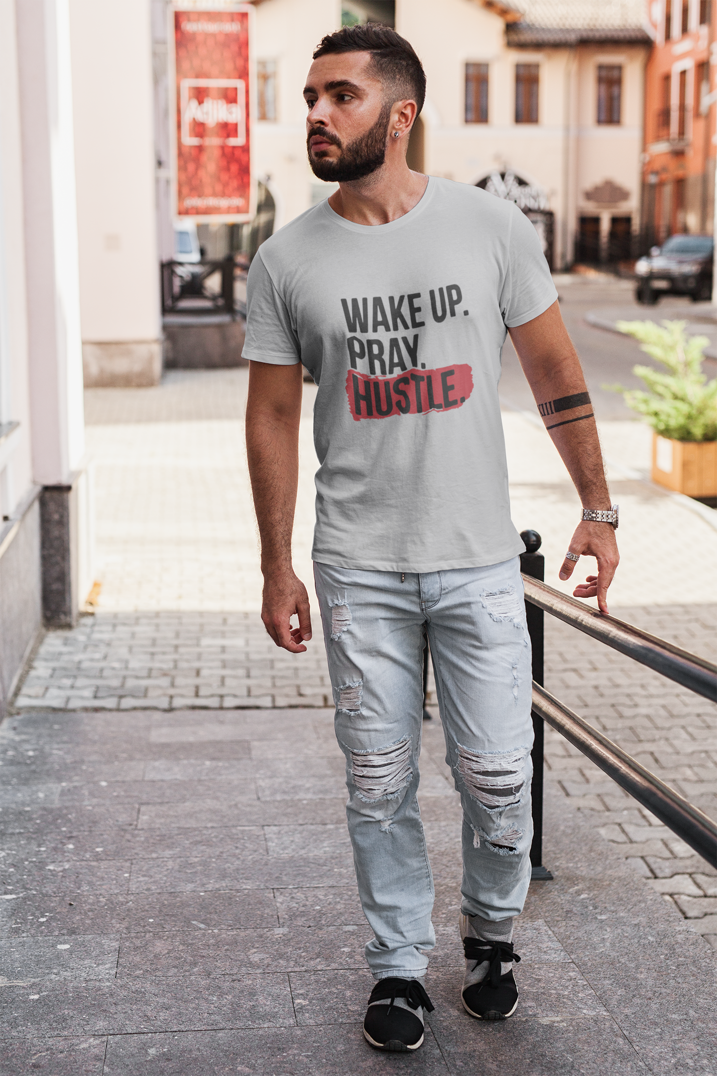 Wake Pray Hustle Mens Half Sleeves T-shirt- FashionRazor