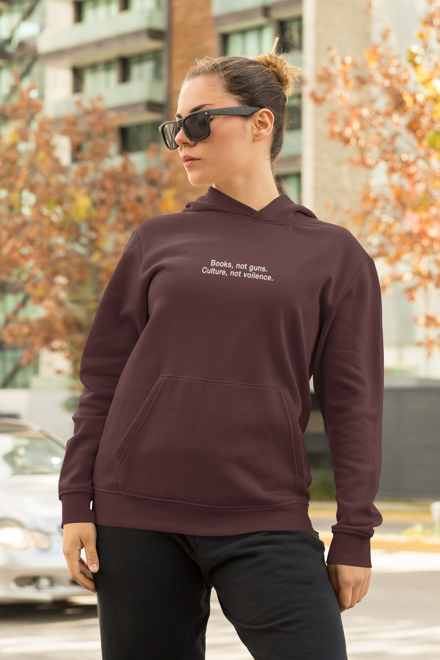 Books Not Guns Culture Not Violence Hoodies for Women-FashionRazor