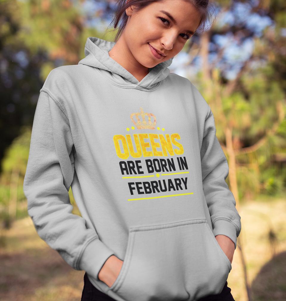 Queens Are Born In February Hoodies for Women-FashionRazor