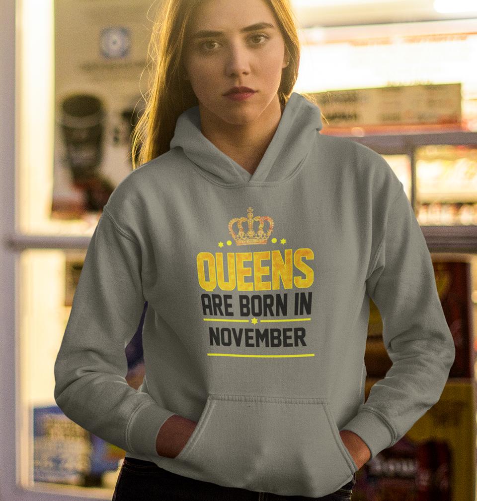Queens Are Born In November Hoodies for Women-FashionRazor