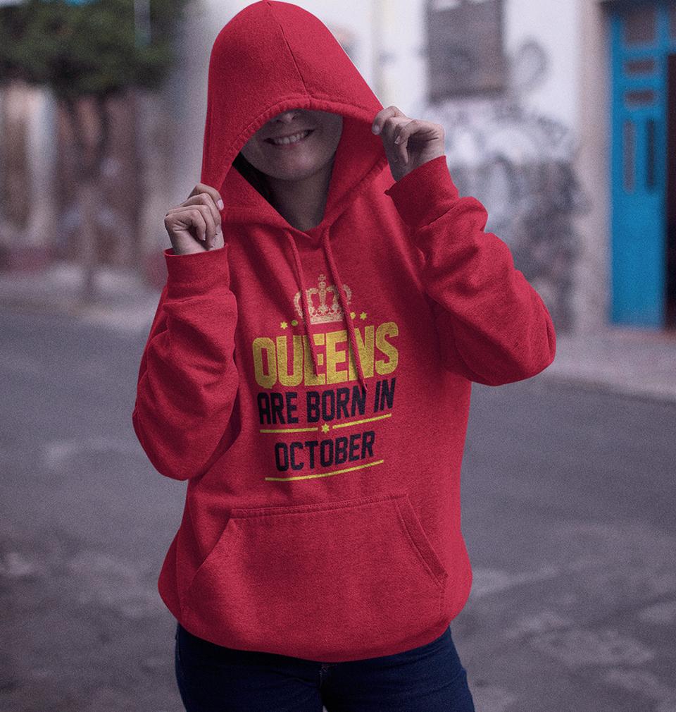 Queens Are Born In October Hoodies for Women-FashionRazor