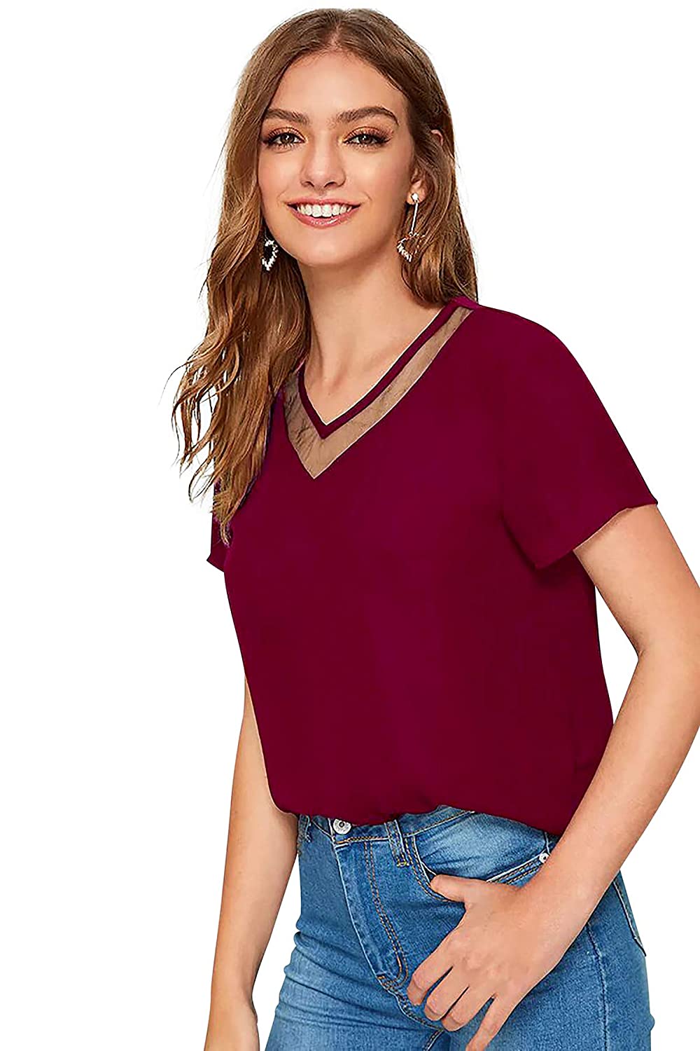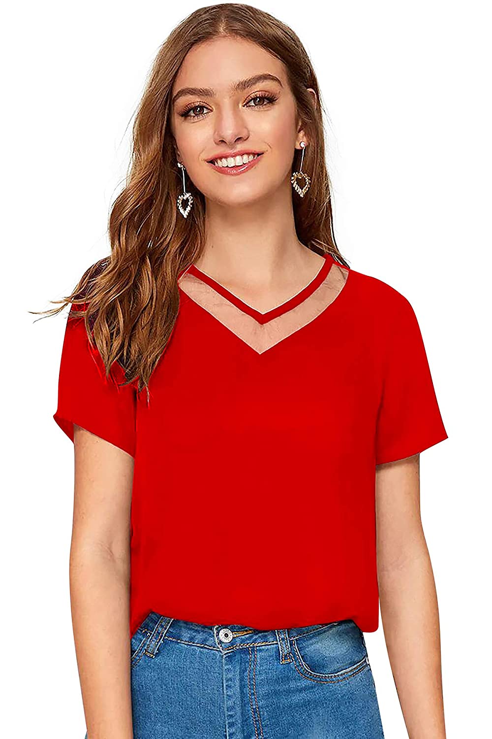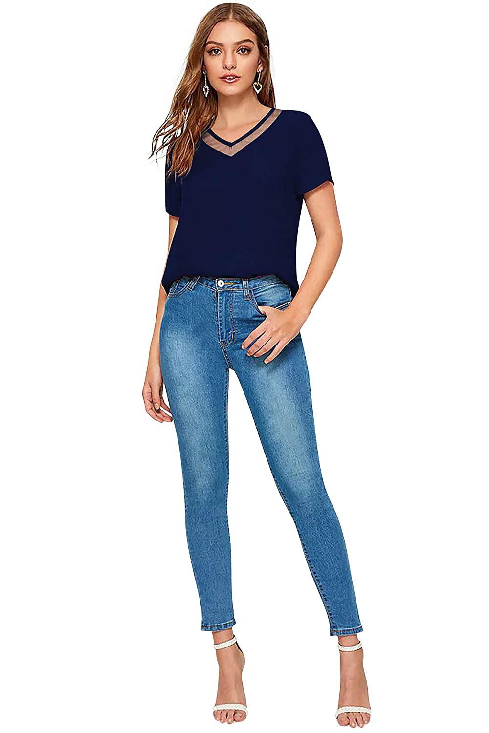Buy Now Designer Fancy V Neck Half Sleeves Top for Girls and Women-FashionRazor