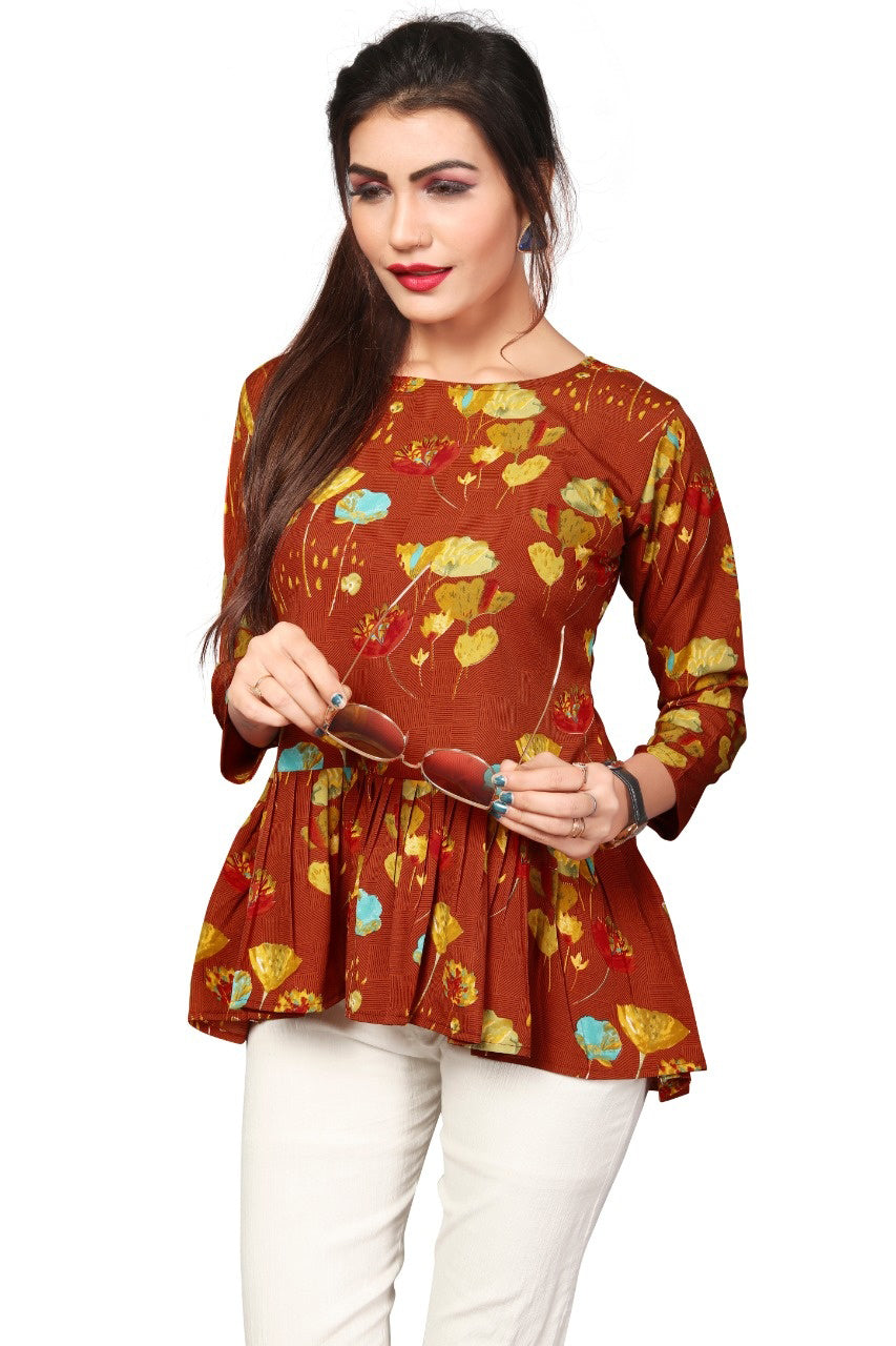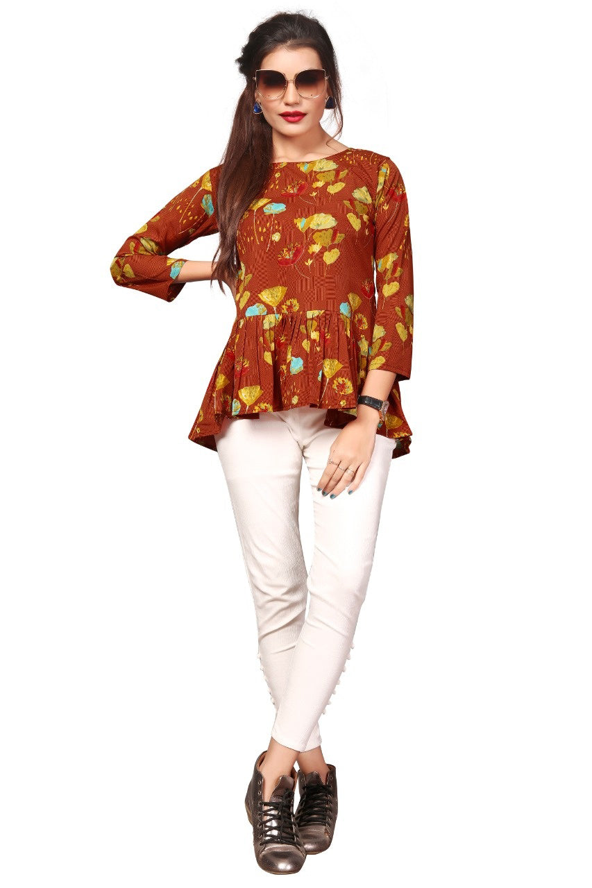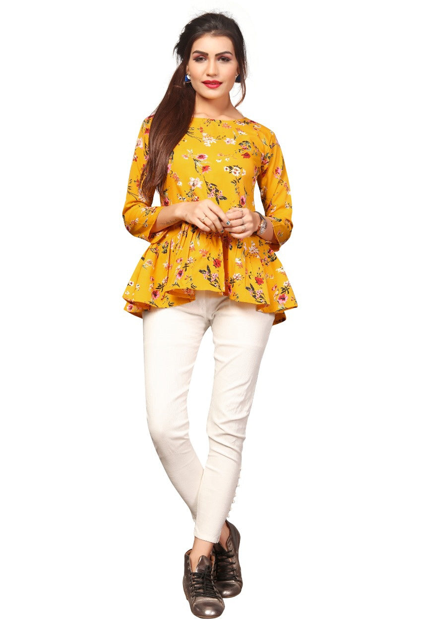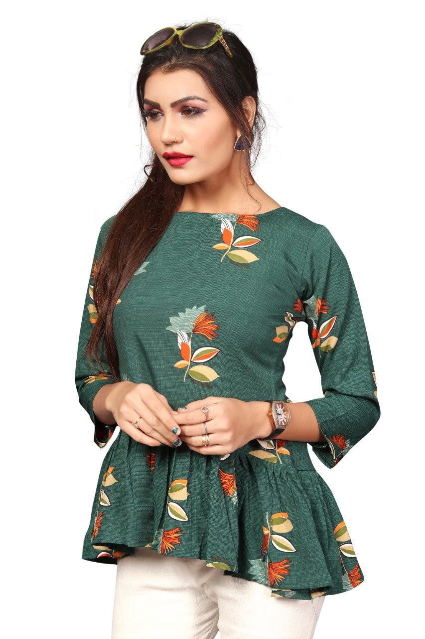 Buy Now Designer Soft Crepe Round Neck Fancy Sleeves Top for Girls and Women-FashionRazor