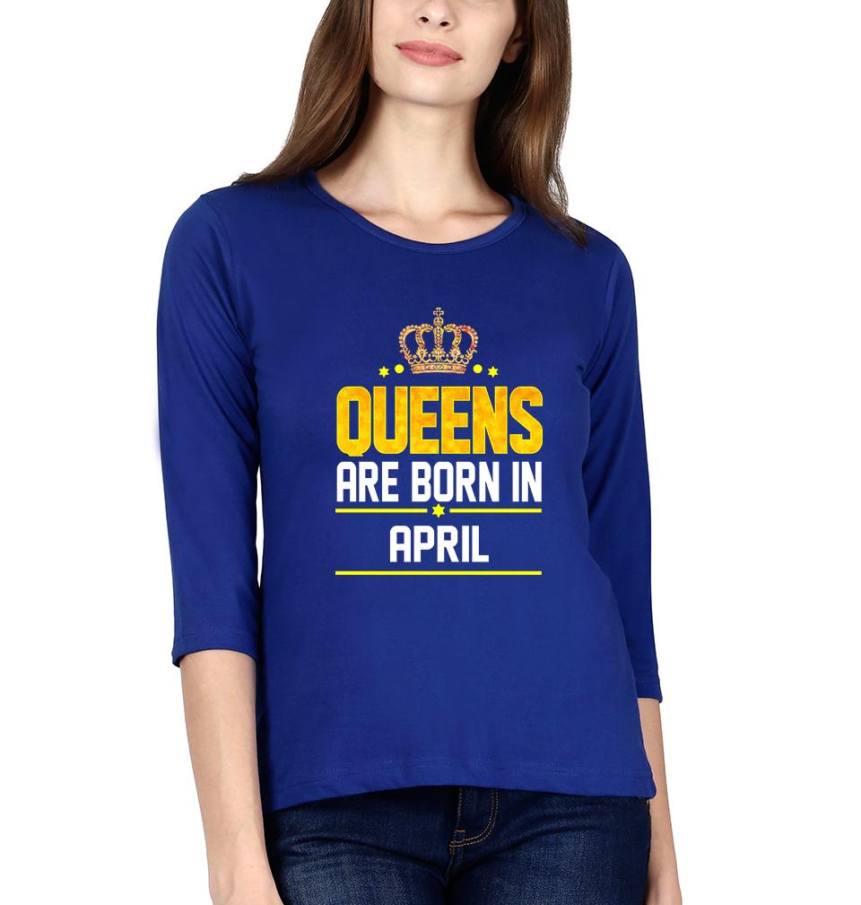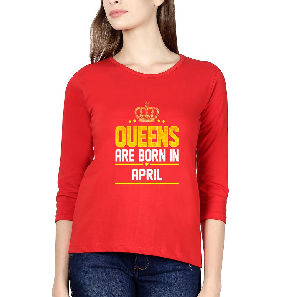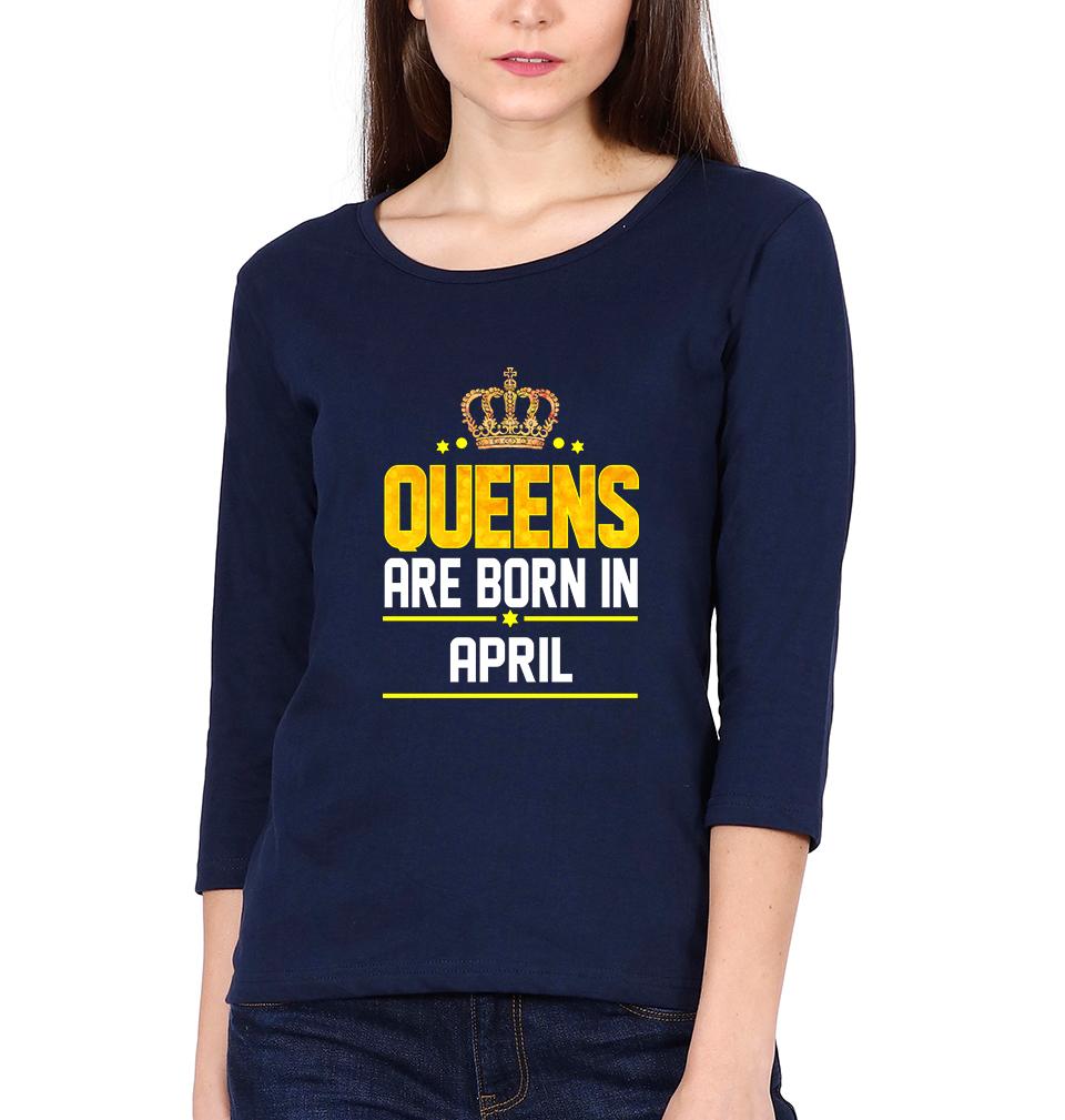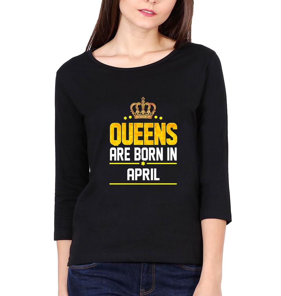 Queens Are Born In April Womens Full Sleeves T-Shirts-FashionRazor