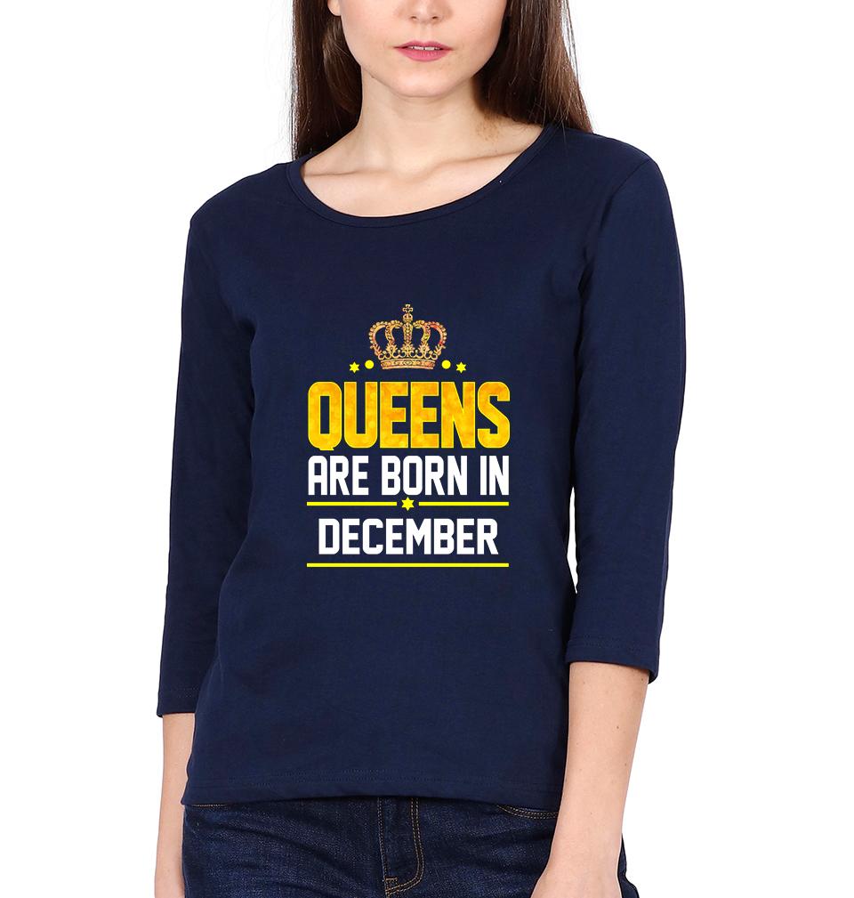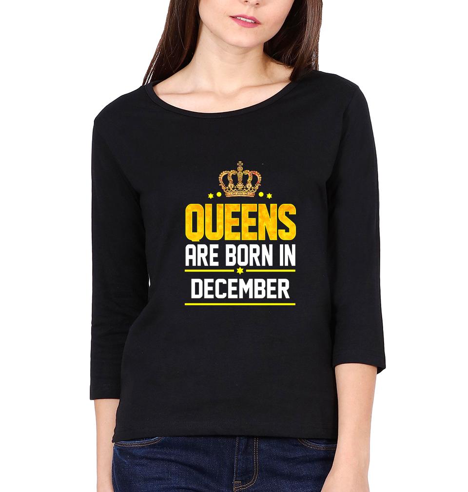 Queens Are Born In December Womens Full Sleeves T-Shirts-FashionRazor