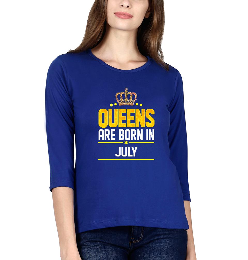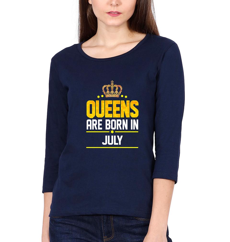 Queens Are Born In July Womens Full Sleeves T-Shirts-FashionRazor