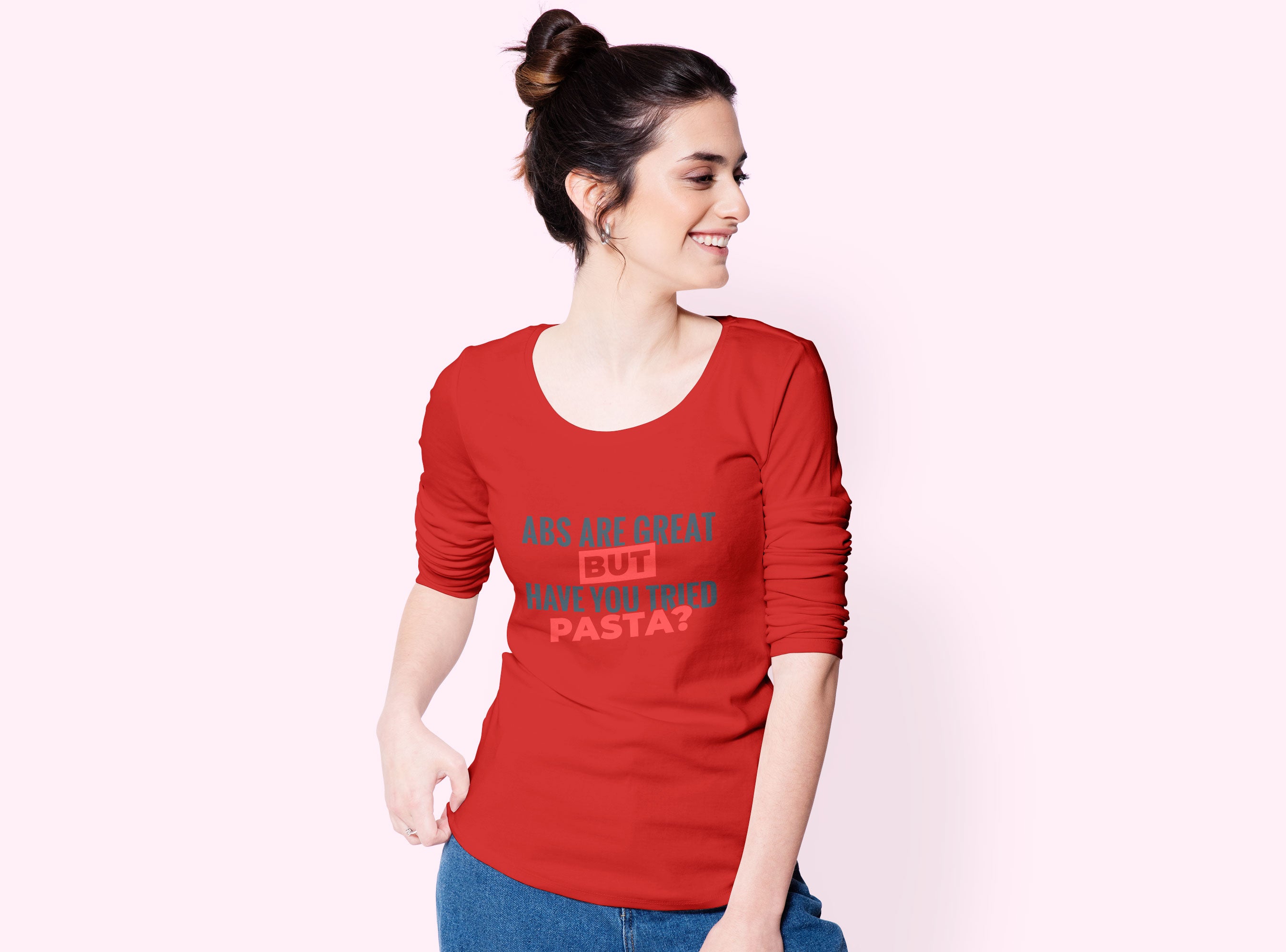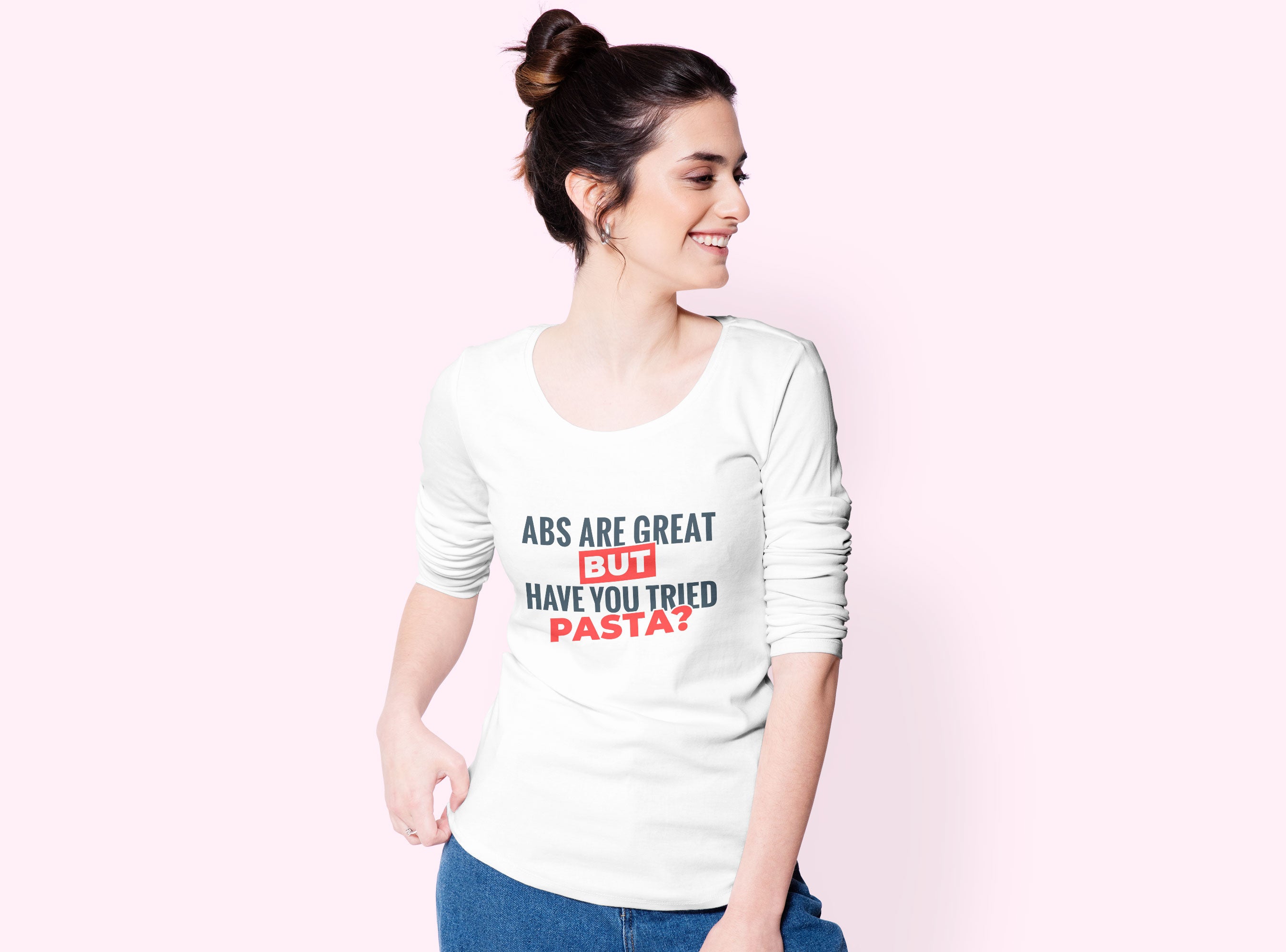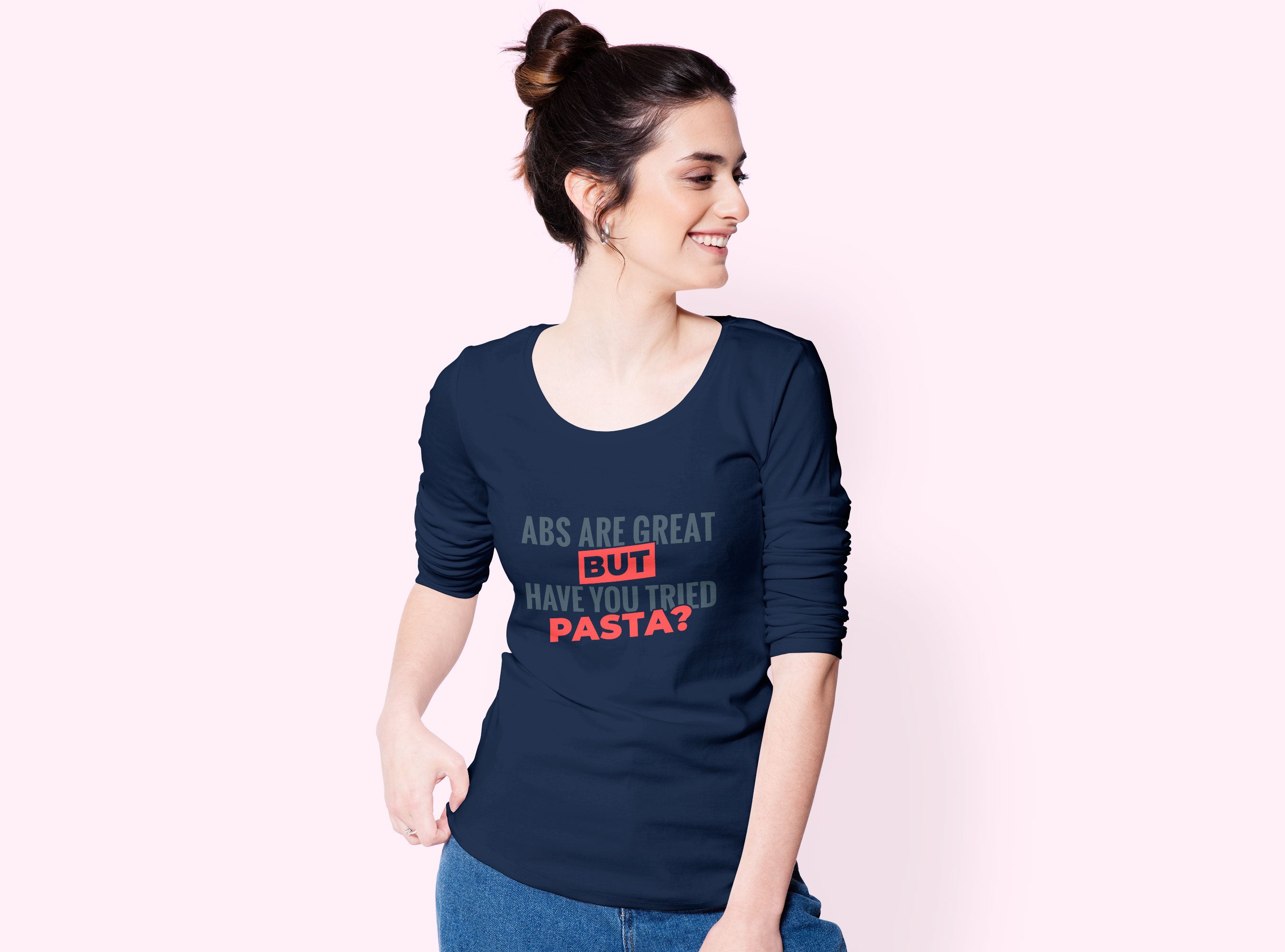 Buy Now Abs are great but pasta Women Full Sleeves T-Shirts-FashionRazor