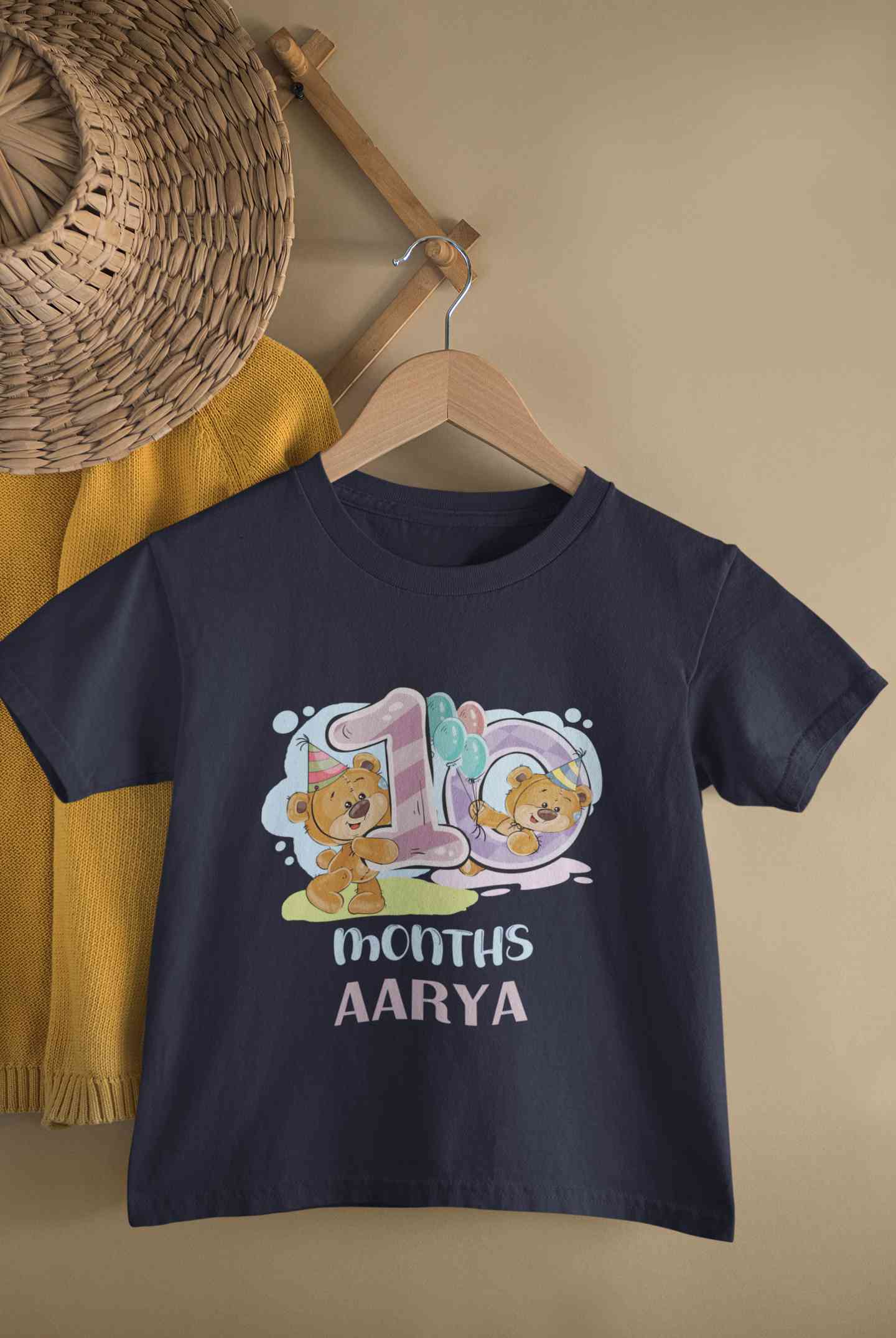 Custom Name 10 Month Birthday Teddy Design Half Sleeves T-Shirt For Girls -FashionRazor