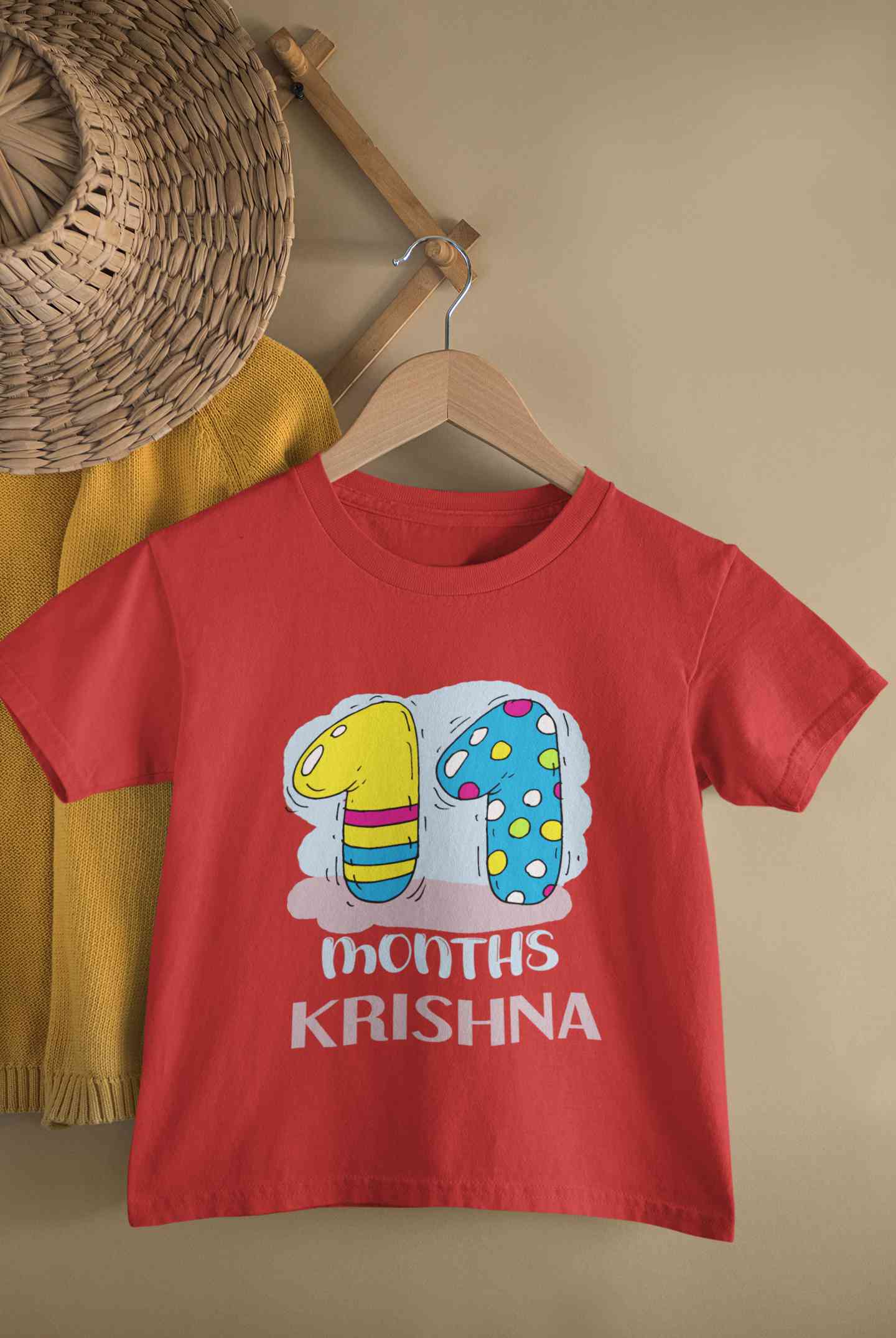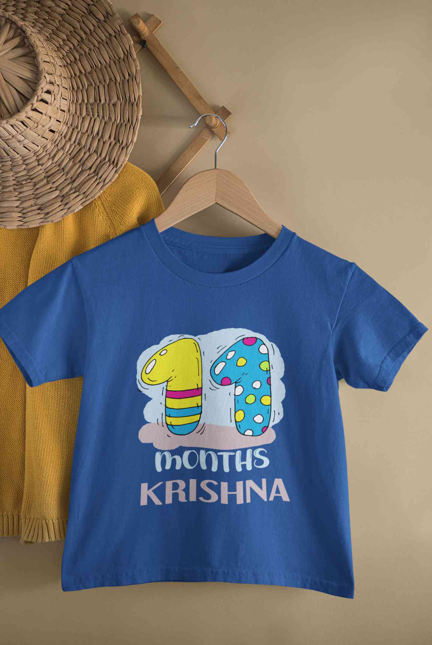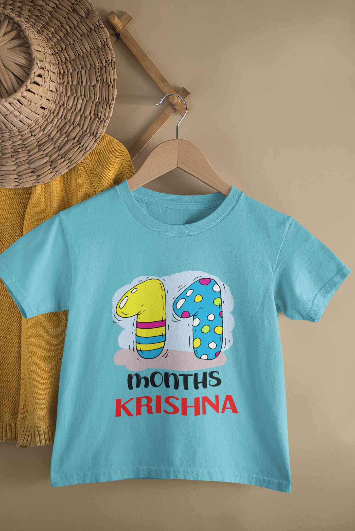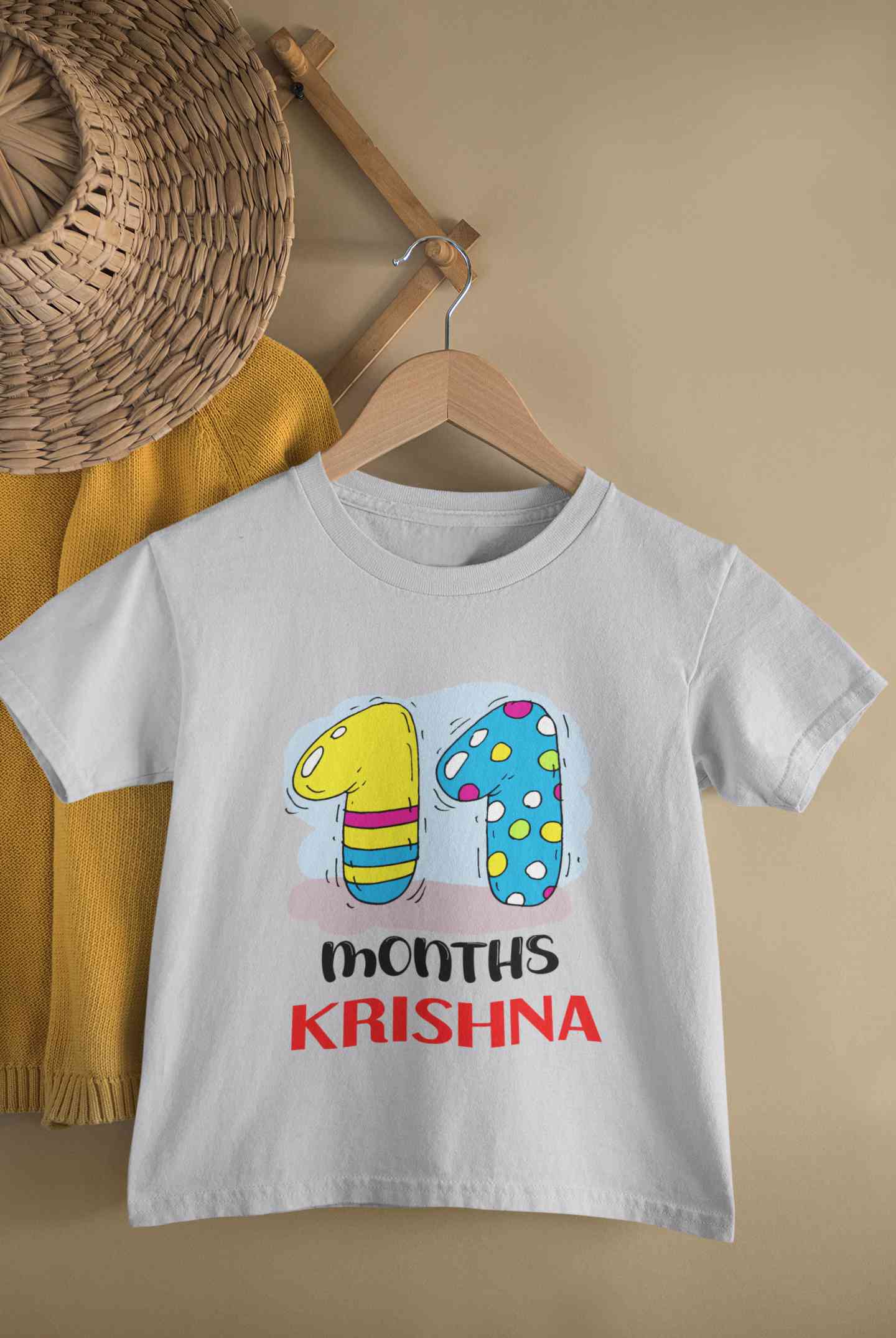 Custom Name 11 Month Birthday Teddy Design Half Sleeves T-Shirt for Boy-FashionRazor