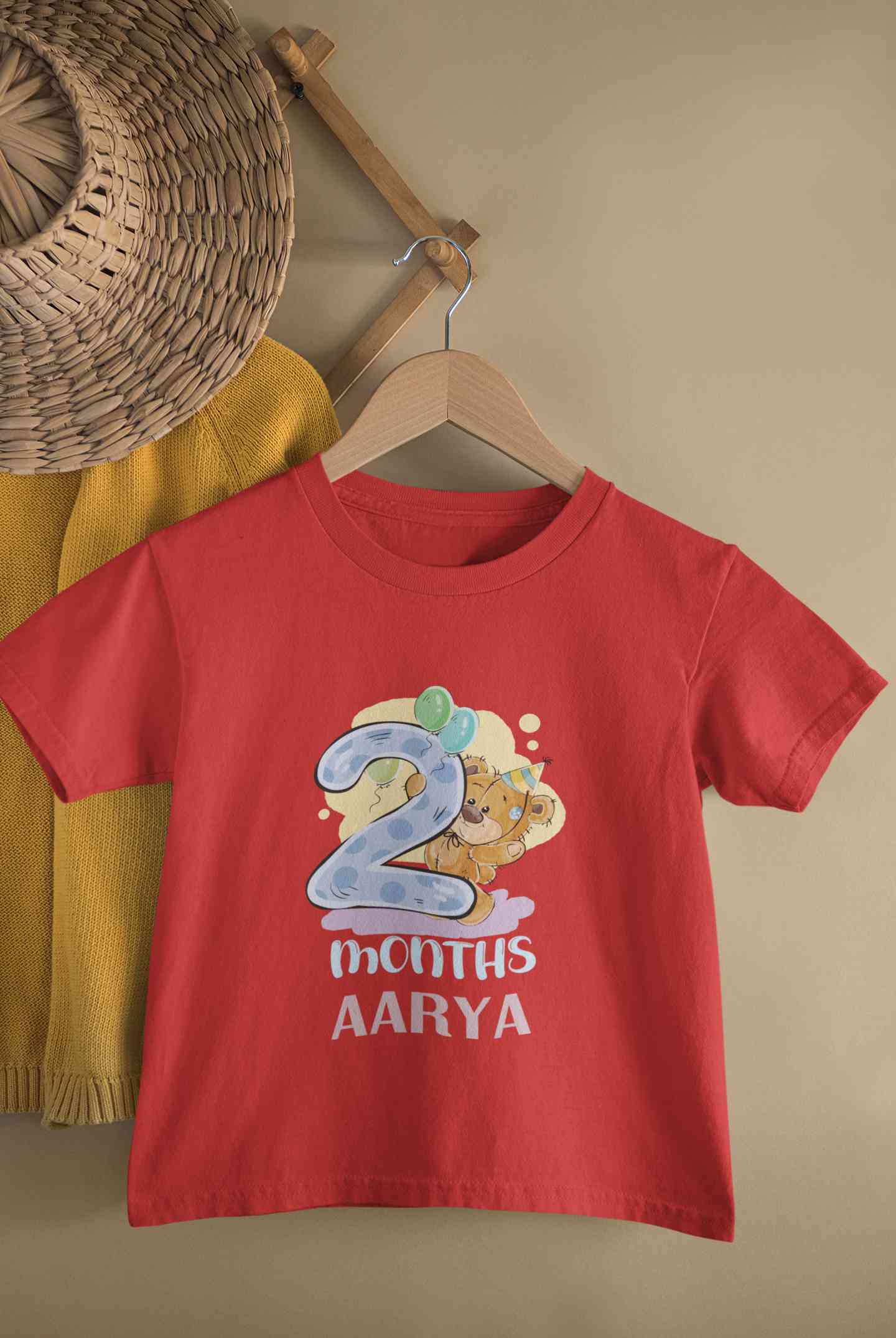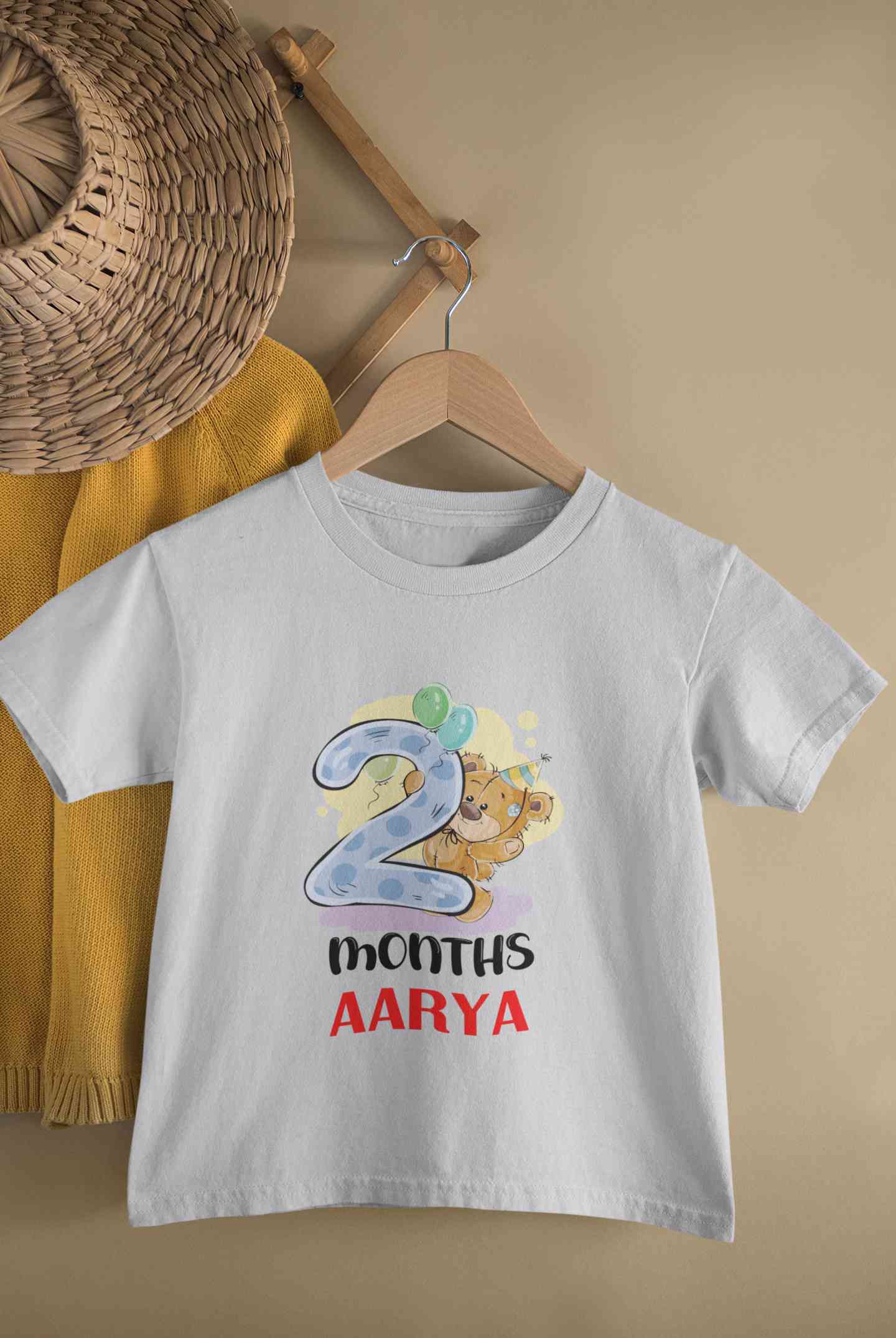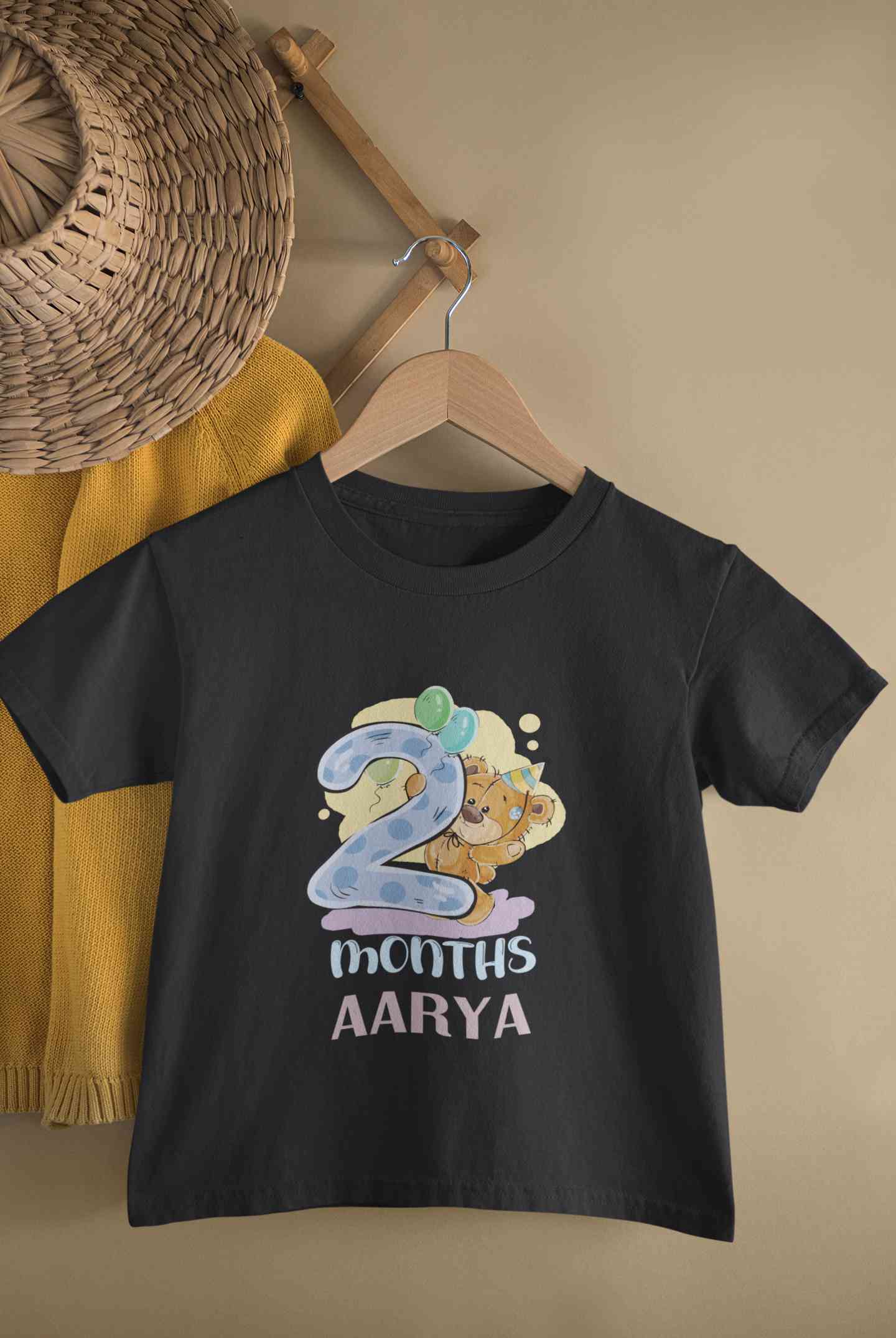 Custom Name 2 Month Birthday Teddy Design Half Sleeves T-Shirt For Girls -FashionRazor