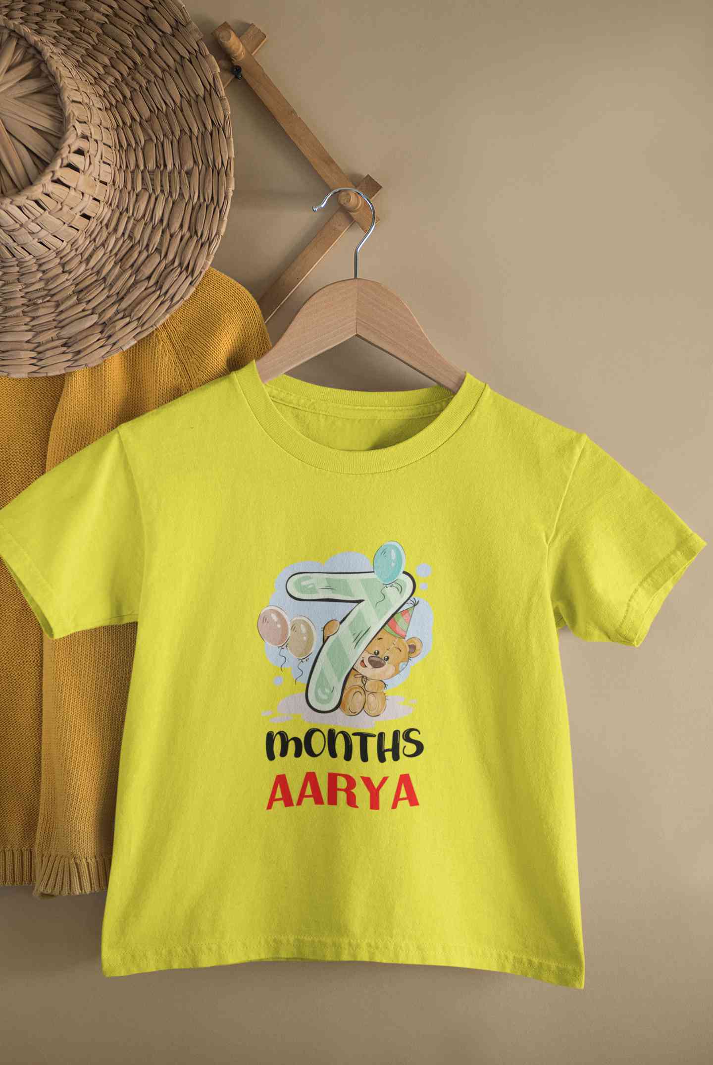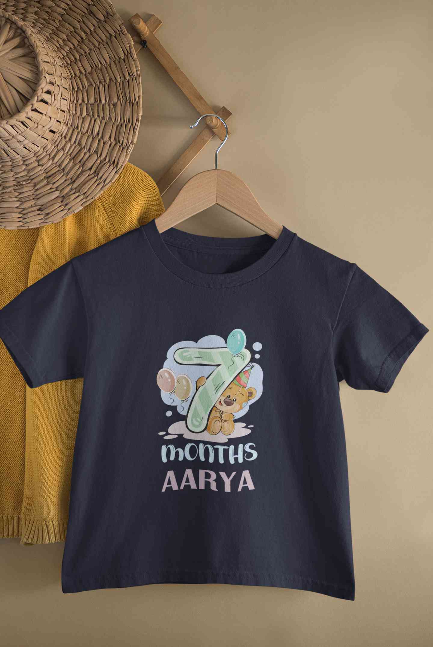 Custom Name 7 Month Birthday Teddy Design Half Sleeves T-Shirt For Girls -FashionRazor