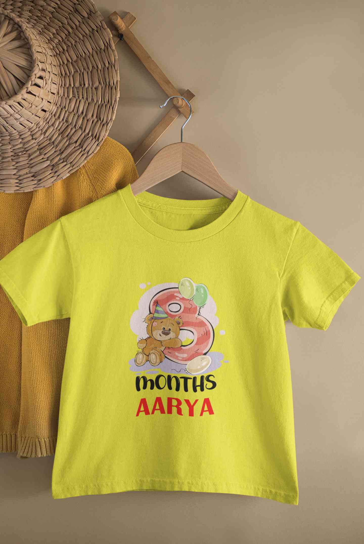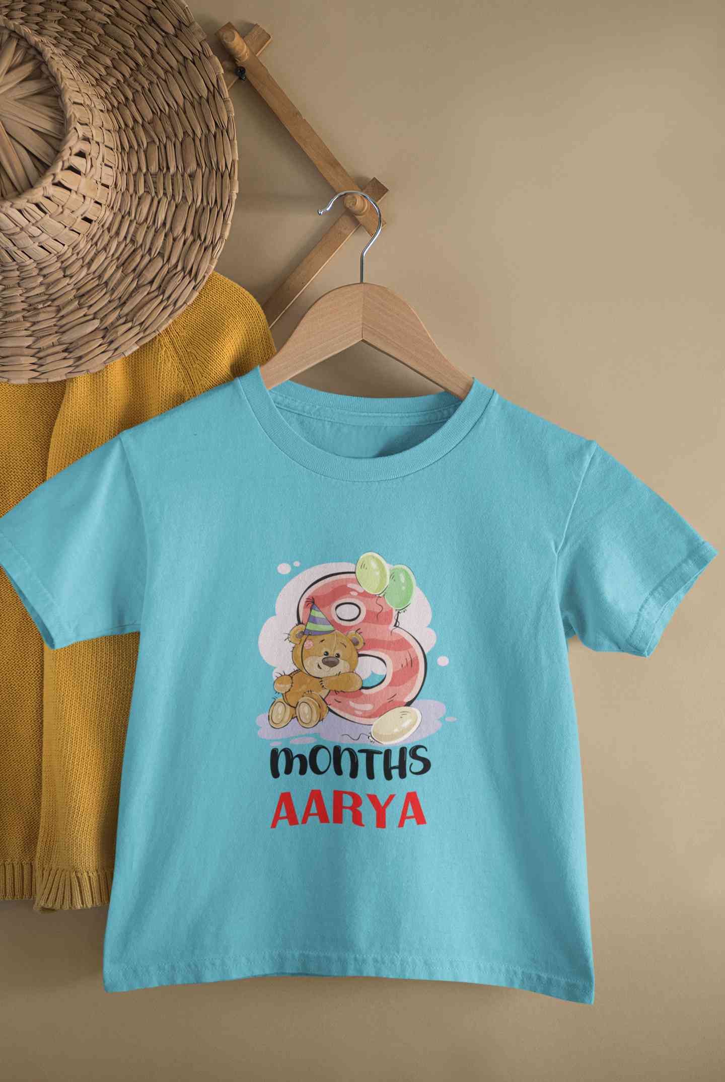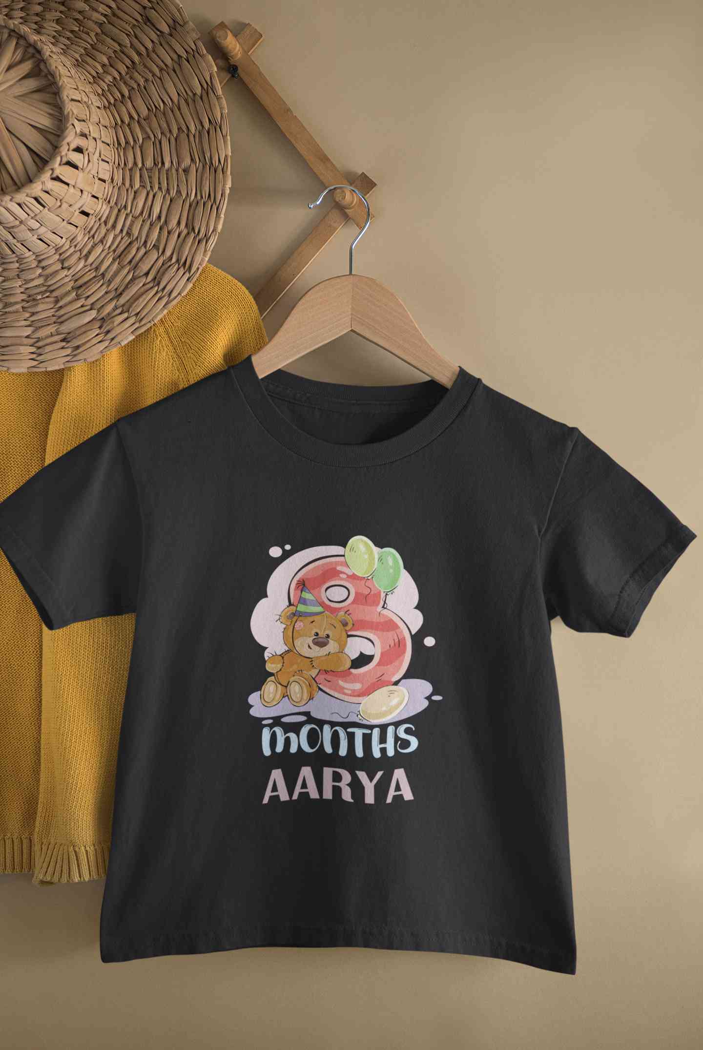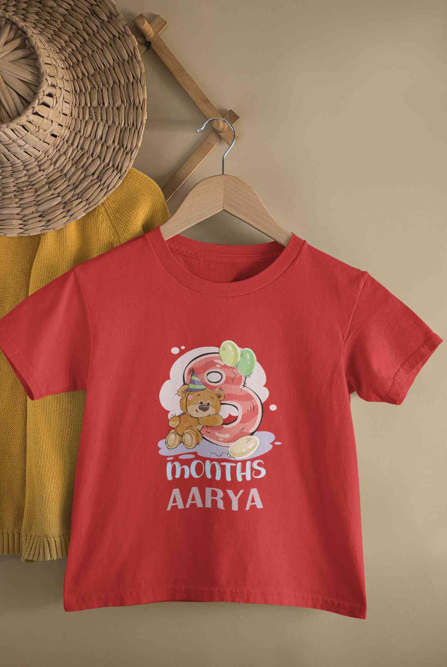 Custom Name 8 Month Birthday Teddy Design Half Sleeves T-Shirt For Girls -FashionRazor