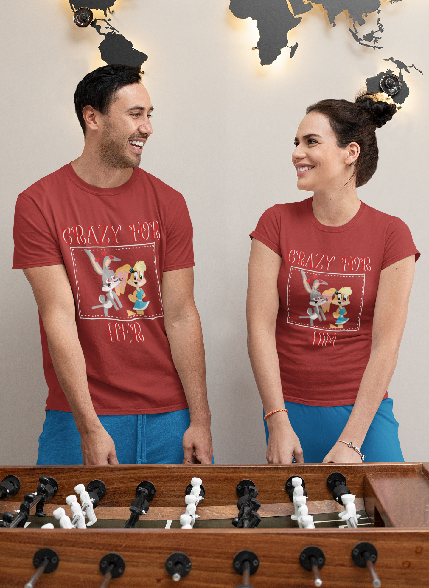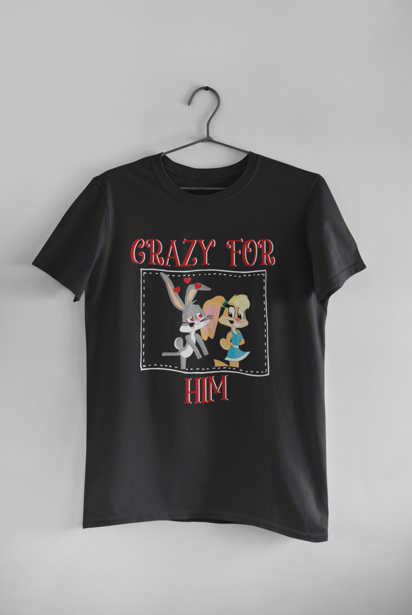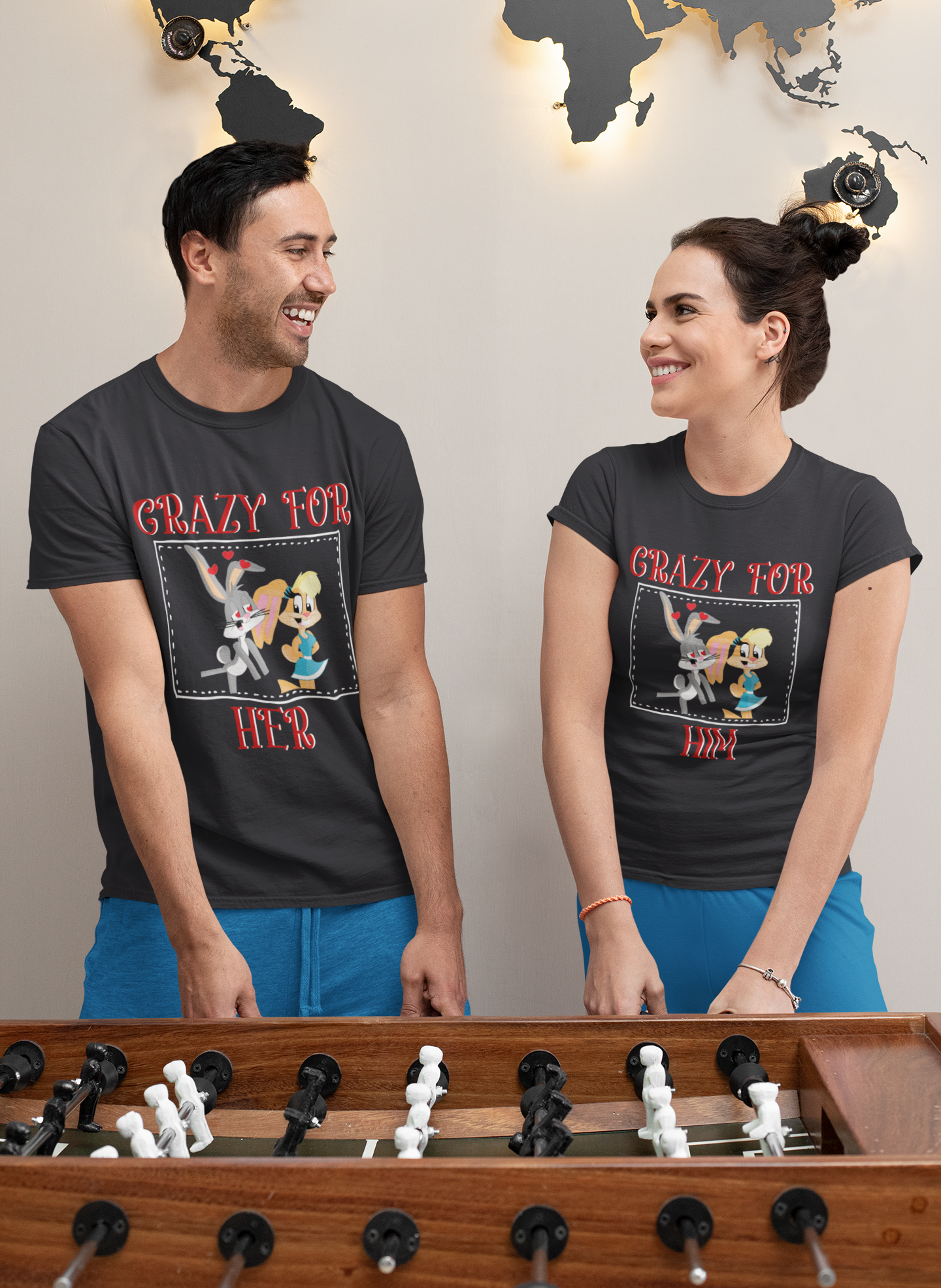 Bunny Couple Crazy For Him Her Couple Half Sleeves T-Shirts -FashionRazor