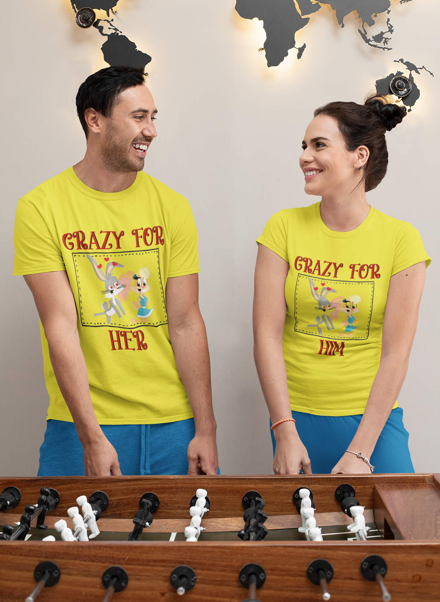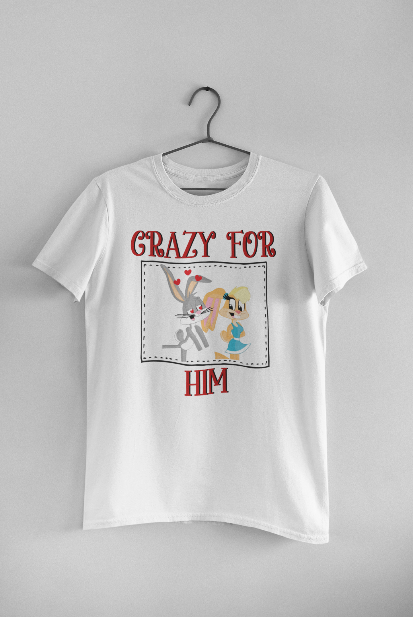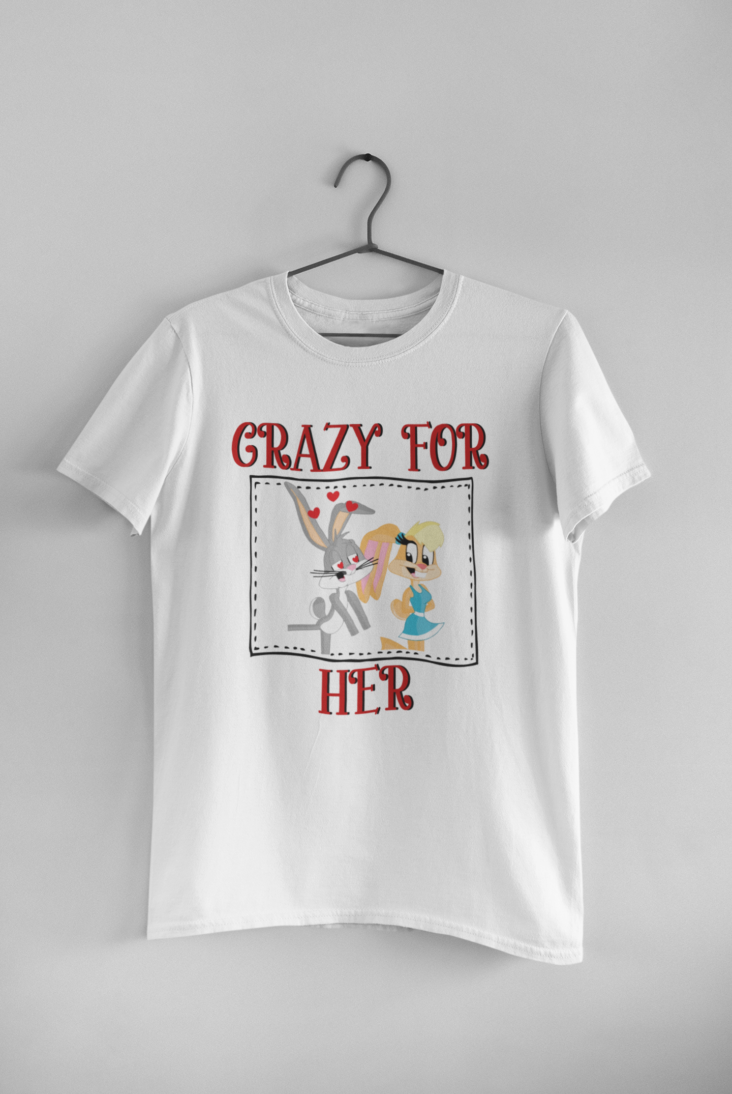 Bunny Couple Crazy For Him Her Couple Half Sleeves T-Shirts -FashionRazor