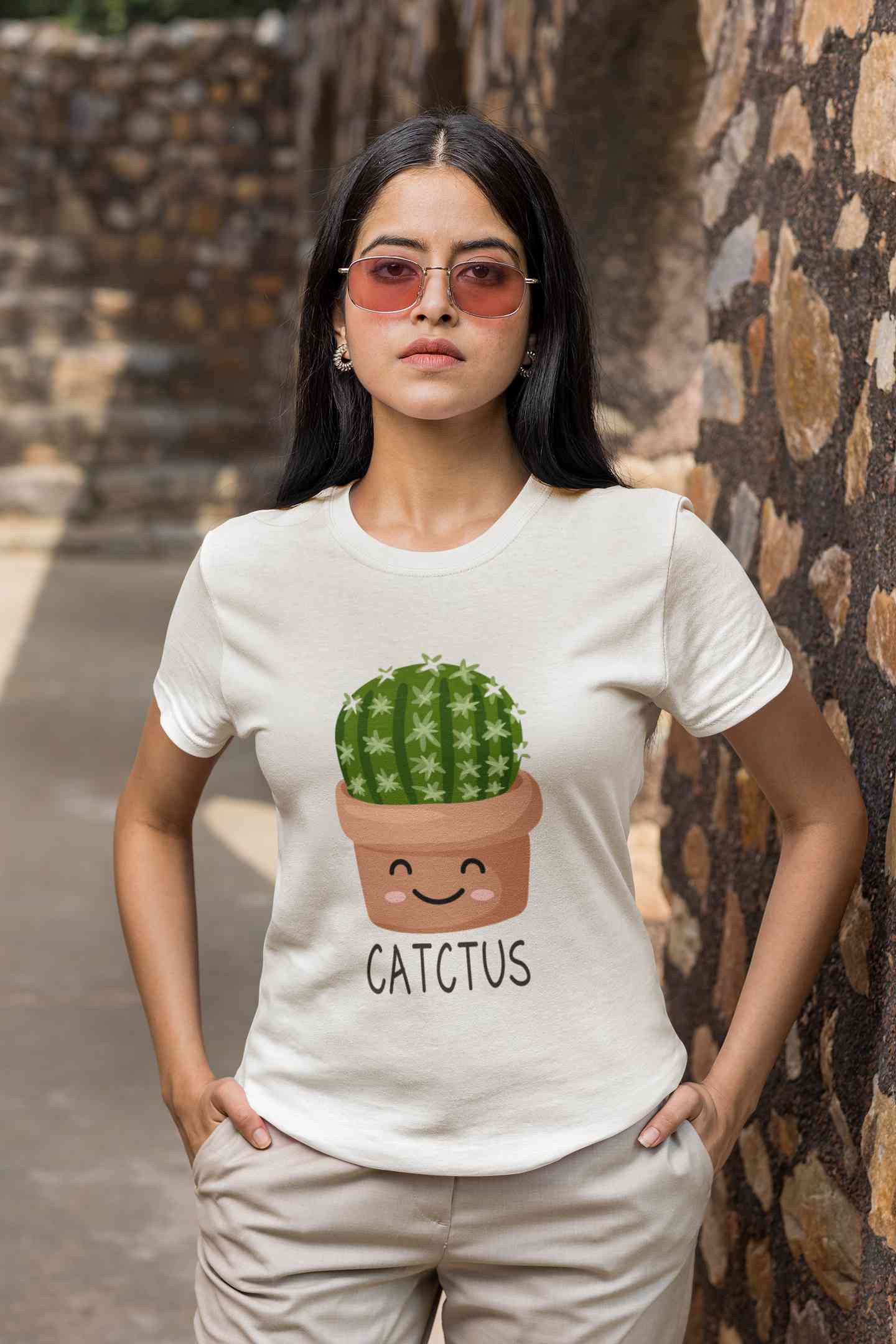 Catctus Women Half Sleeves T-shirt- FashionRazor