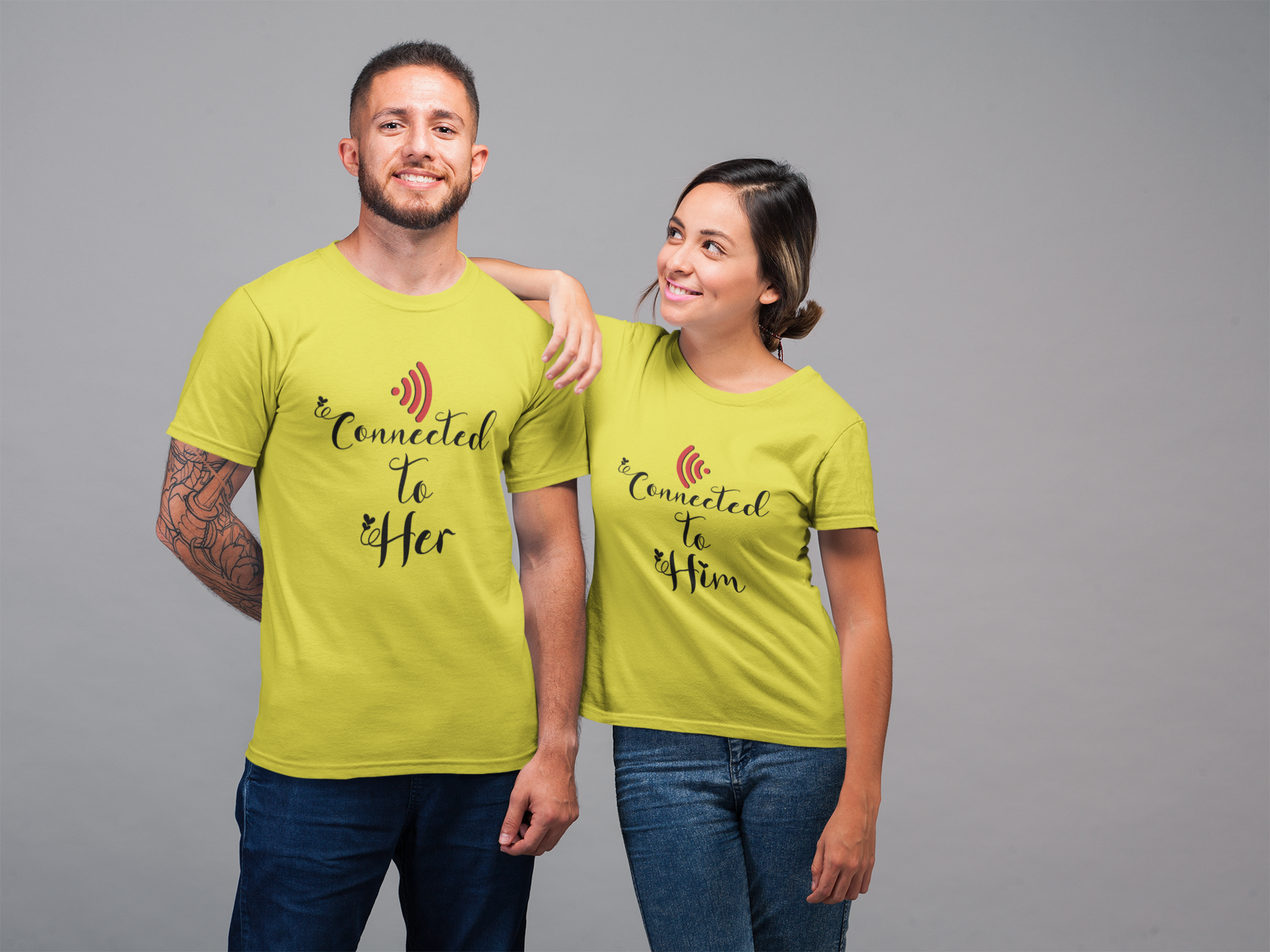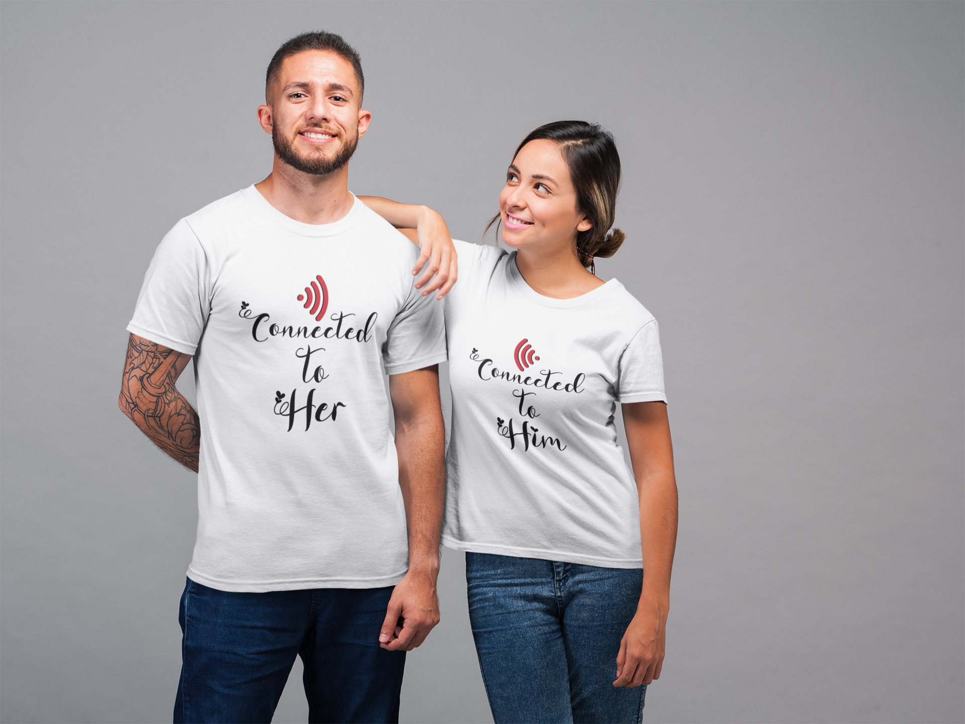 Connected To Him Couple Half Sleeves T-Shirts -FashionRazor
